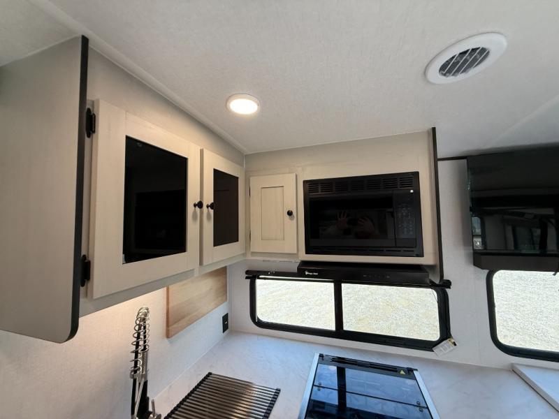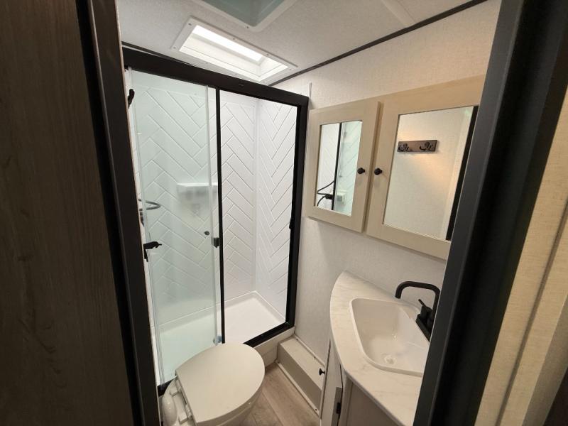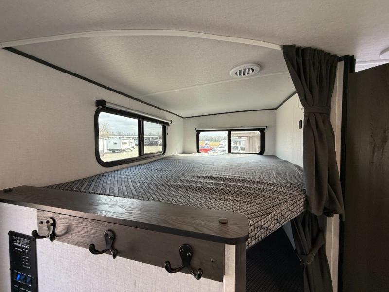 With any Northern Spirit Ultra Lite travel trailer by Coachmen, the "Twice Cool" dual ducted air conditioning system, motion activated floor lights, and the motion activated pass-through storage light plus fishing pole storage, will make your camping experience simplified. The heated and enclosed underbelly provides protection on the road, the 200W solar panel with 30 amp controller provides off-grid camping, and the power tongue jack makes setup easier. Each is built with a front cap with LED strip lights, a laminated, aluminum framed floor, rear wall, and sidewalls, plus a fully walkable roof with seamless Tufflex PVC covering. Make your decision today, and camp with everything in its place!