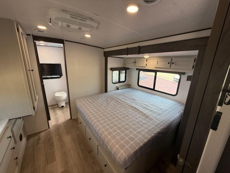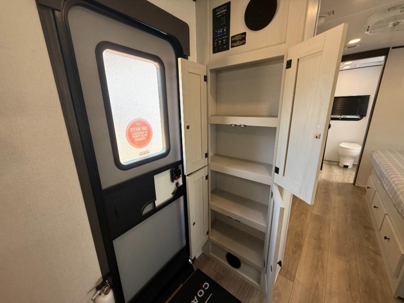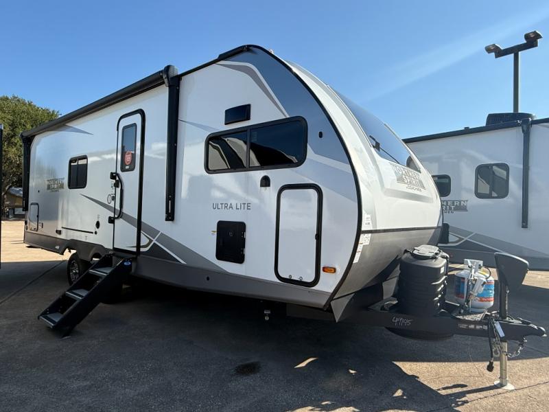 With any Northern Spirit Ultra Lite travel trailer by Coachmen, the "Twice Cool" dual ducted air conditioning system, motion activated floor lights in the bedroom and bathroom, and the motion activated pass-through storage light plus fishing pole storage, will make your camping experience simplified. The heated and enclosed underbelly provides protection on the road and allows you to camp during any season, the 200W solar panel with 30 amp controller provides off-grid camping, and the power tongue jack makes setup easier. Each is built with a front cap with LED strip lights, a laminated, aluminum framed floor, rear wall, and sidewalls, plus 5" trusses with an interior vault. Make your decision today, and camp with everything in its place!