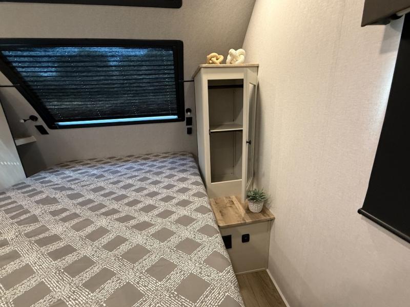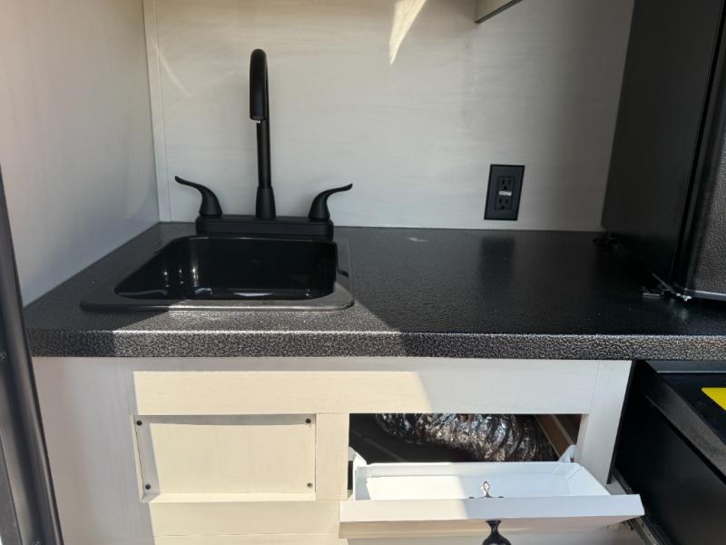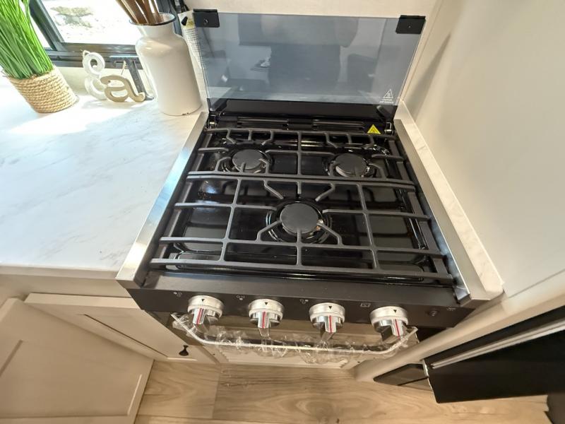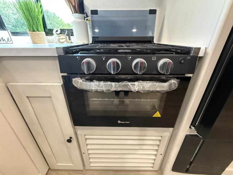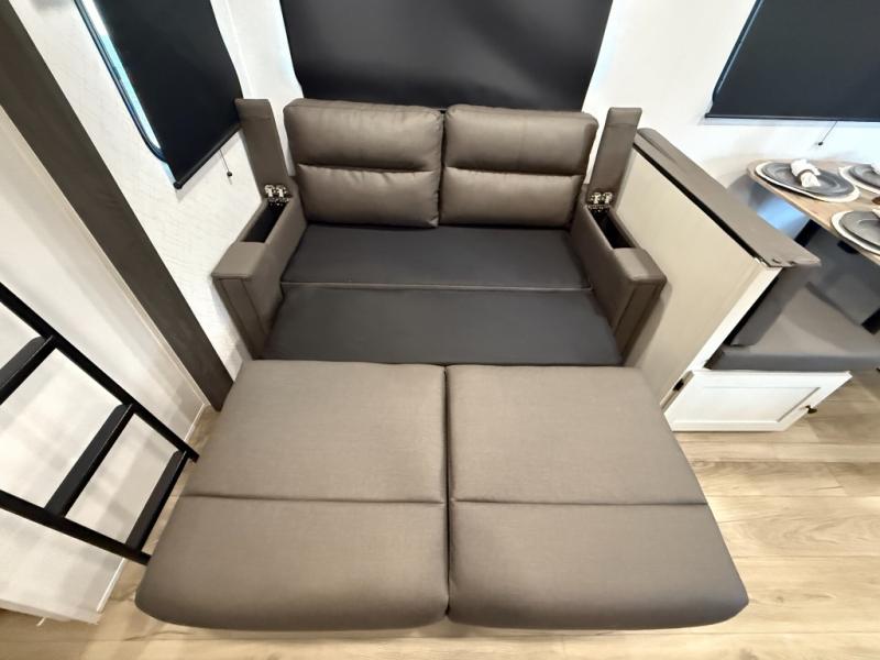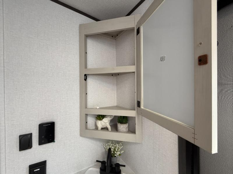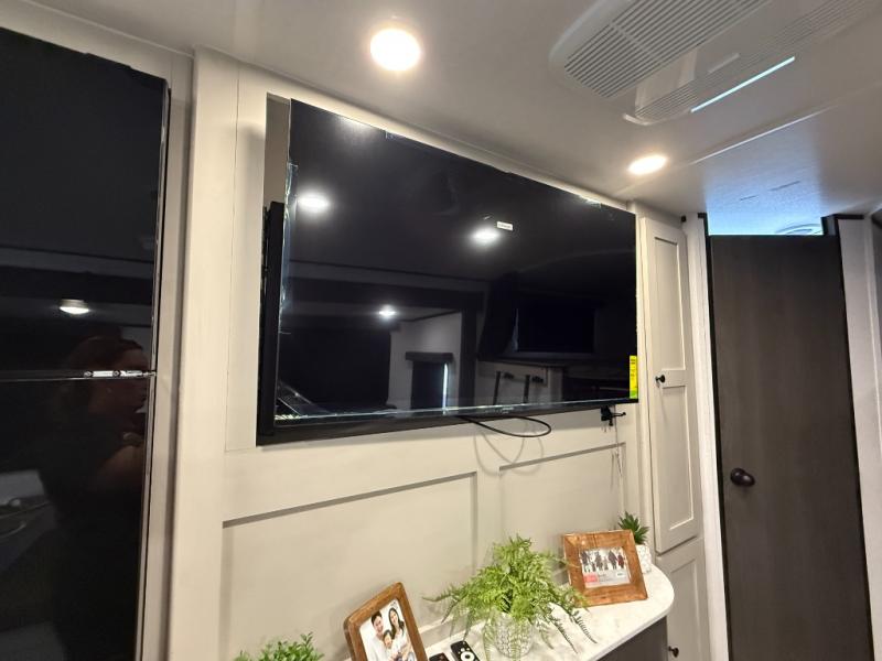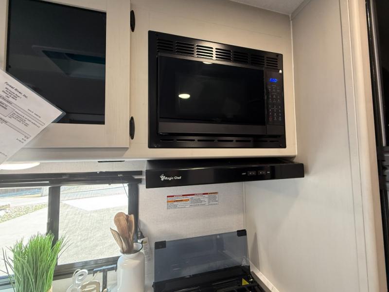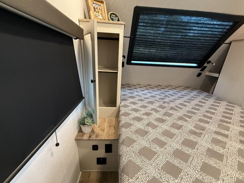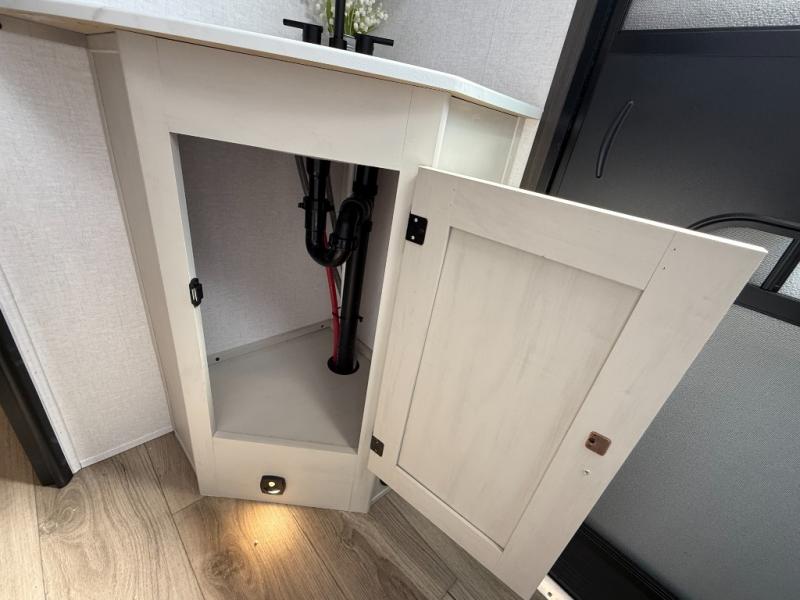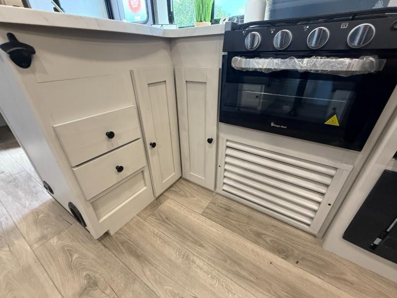 This is a popular bunk trailer for a larger family thanks to having the convenience of dual entry doors allowing access to the main living and kitchen area and near the front bedroom, and into the full bathroom for a quick in and out when playing outside. The bathroom also includes a hamper for convenience. The Stor-More cargo door allows you to place items from the exterior to the interior under the lower flip bunk for safe travels to your destinations and back home. The kids will surely love the convenience centers when playing or sleeping in a bunk. There is a sofa and booth dinette slide including a pet center for relaxing and feeding your pet. The kitchen includes full amenities plus a pantry to store lots of goodies for everyone. Along the exterior, the outside camp kitchen will come in handy when you have everyone at the campsite for dinner and the 18' awning offers some protection from the elements.