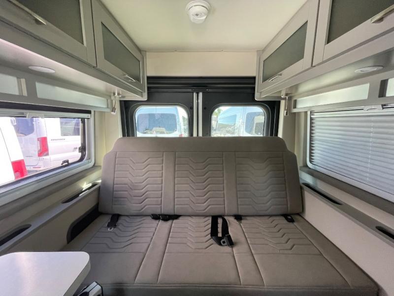 Grab your honey and head to your favorite camping spot in this cozy camper van. Once you park for the day, you can swivel the captain's seats around and enjoy coffee at the swivel table. Lunch can be made on the induction cooktop, and the cold ingredients can go back in the 7.3 cu. ft. refrigerator. The convenient wet bath allows you to freshen up after a hike, and the rear lay-flat power sofa will provide comfortable sleeping space when you're ready to turn in for the night. There are also two jump seats and a swivel table if you want to say up and play a game of cards!