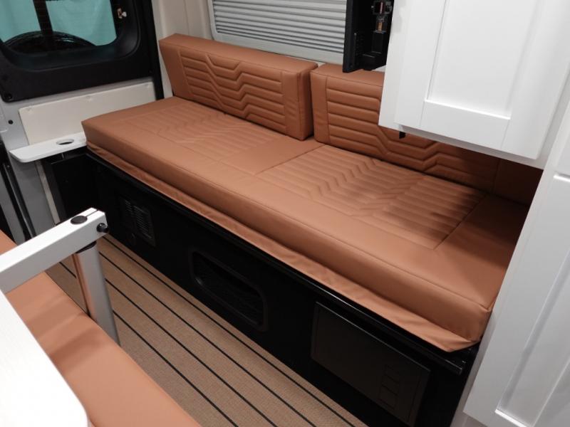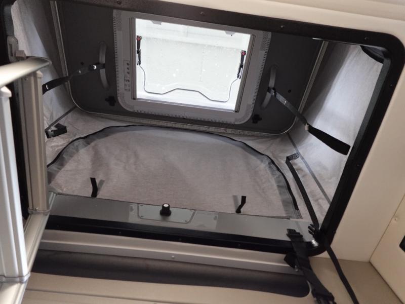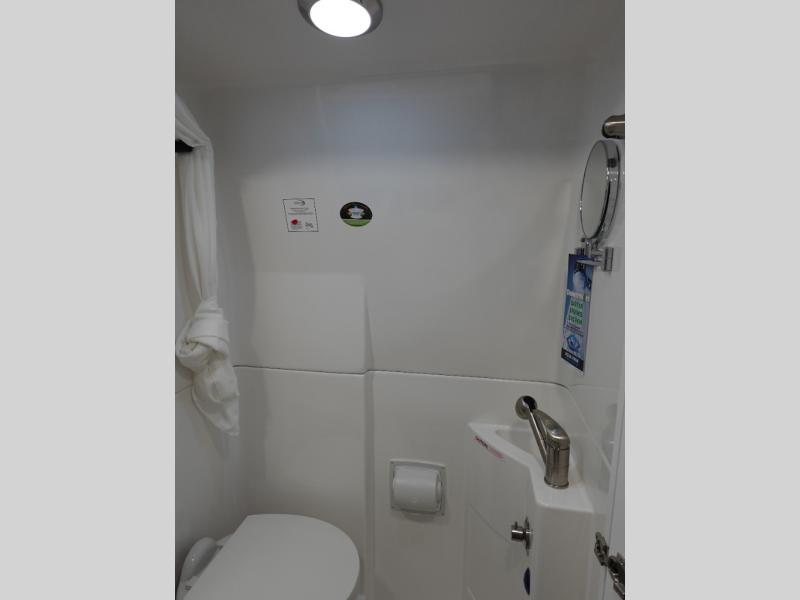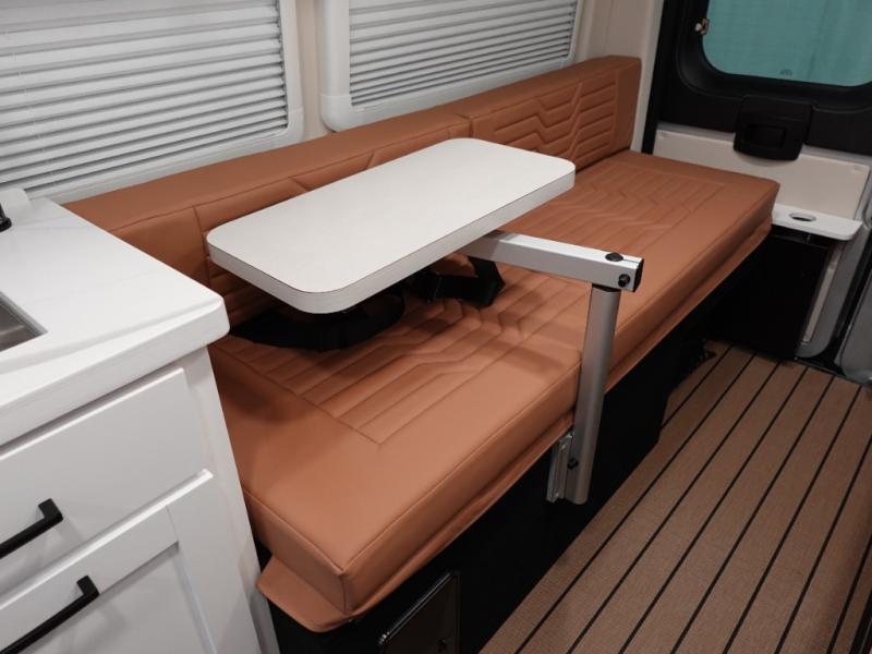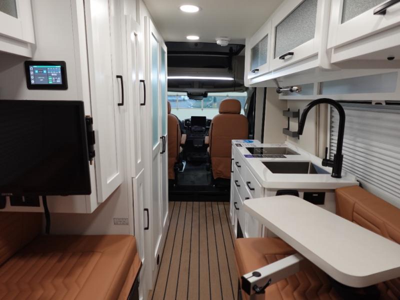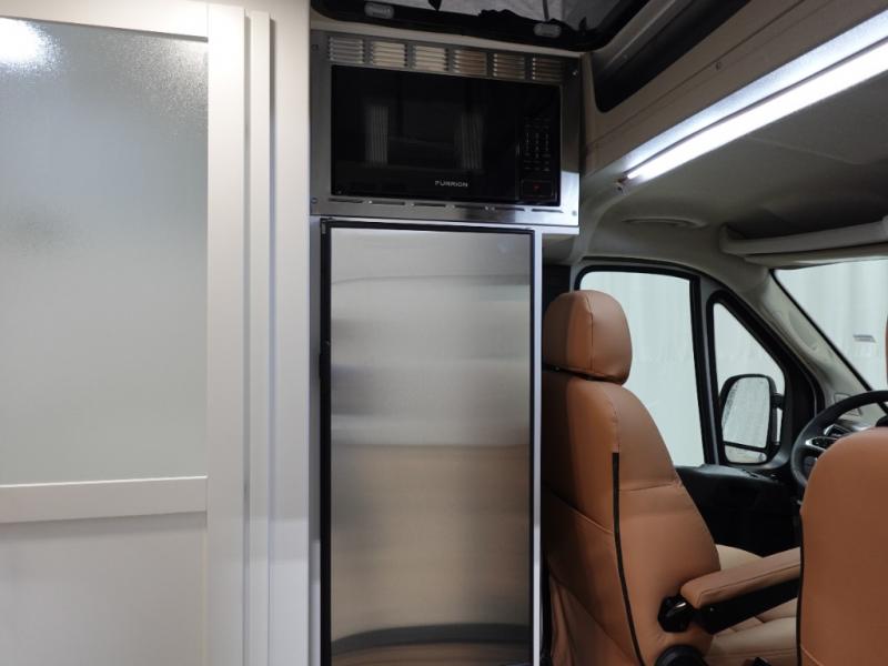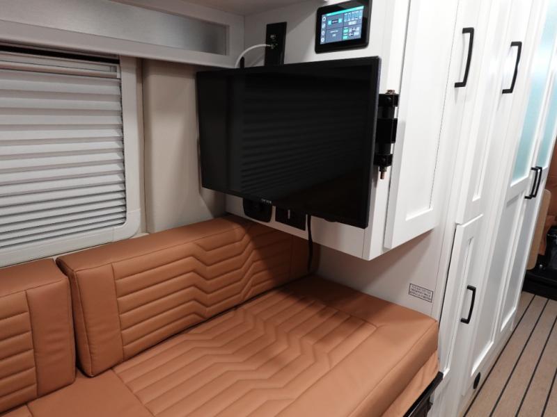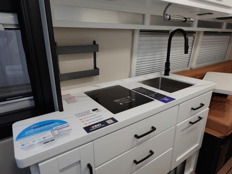 Hit the road and enjoy each journey in this Nova Class B coach. Once you park for the day, you can swivel the captain's seats around and utilize the swivel table. Lunch can be made on the induction cooktop, and the cold ingredients can go back in the 7.3 cu. ft. refrigerator. The convenient wet bath allows you to freshen up after a day exploring, and when you're ready to turn in for the night you can choose from either two 75" x 26" beds, or combine them to create a 75" x 73" bed instead. You will find ample storage in overhead cabinets along each side, beneath the bed, plus there is an extra wardrobe on the roadside as well.