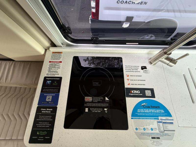 Each Nova Class B gas motorhome by Coachmen features Sumo Spring front and rear suspension for a smooth ride. Each unit is built on a Ram ProMaster 3500 chassis, and is powered by a 3.6L V6, 24 valve engine with 280 HP. You will appreciate the innovative Firefly multiplex system, the Sure Level tank sensors, and the 3 Group 31, 115AH AGM batteries for added power, as well as a new 24" LED Smart TV to help keep you entertained on long trips. Inside, you'll find solid hardwood cabinetry, a fiberglass shower verses the competitors ABS shower, a remote control MaxxAir fan with a rain sensor, and many more comforts to make you feel right at home. There is also a Truma Aventa 13,500 BTU A/C with three speeds, a dehumidifier, and night mode to ensure your comfort throughout each trip! An optional Li Lithium Battery System can be added which features a 640 amp-hour lithium battery, a Bluetooth battery management system, a Xantrex XC Pro 3,000W inverter/charger, and more features for off-grid capability!