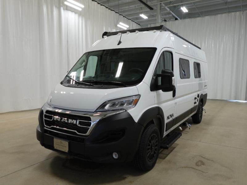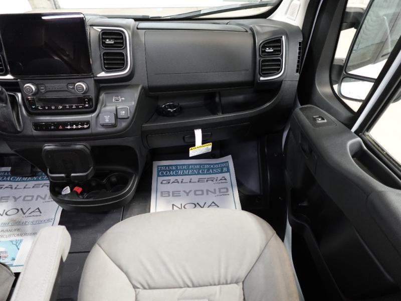 Each Nova Class B gas motorhome by Coachmen features Sumo Spring front and rear suspension for a smooth ride. Each unit is built on a Ram ProMaster 3500 chassis, and is powered by a 3.6L V6, 24 valve engine with 280 HP. You will appreciate the innovative Firefly multiplex system, the Sure Level tank sensors, and the 3 Group 31, 115AH AGM batteries for added power, as well as a new 24" LED Smart TV to help keep you entertained on long trips. Inside, you'll find solid hardwood cabinetry, a fiberglass shower verses the competitors ABS shower, a remote control MaxxAir fan with a rain sensor, and many more comforts to make you feel right at home. There is also a Truma Aventa 13,500 BTU A/C with three speeds, a dehumidifier, and night mode to ensure your comfort throughout each trip!