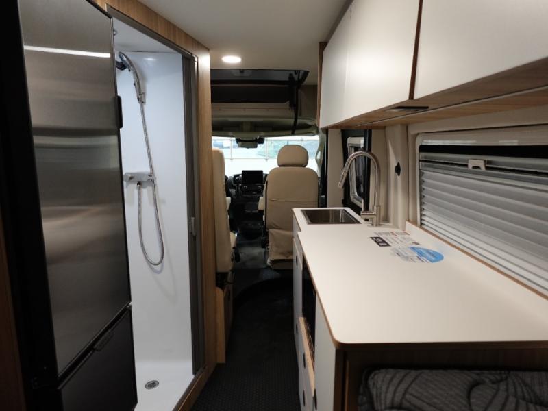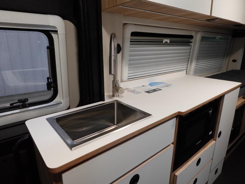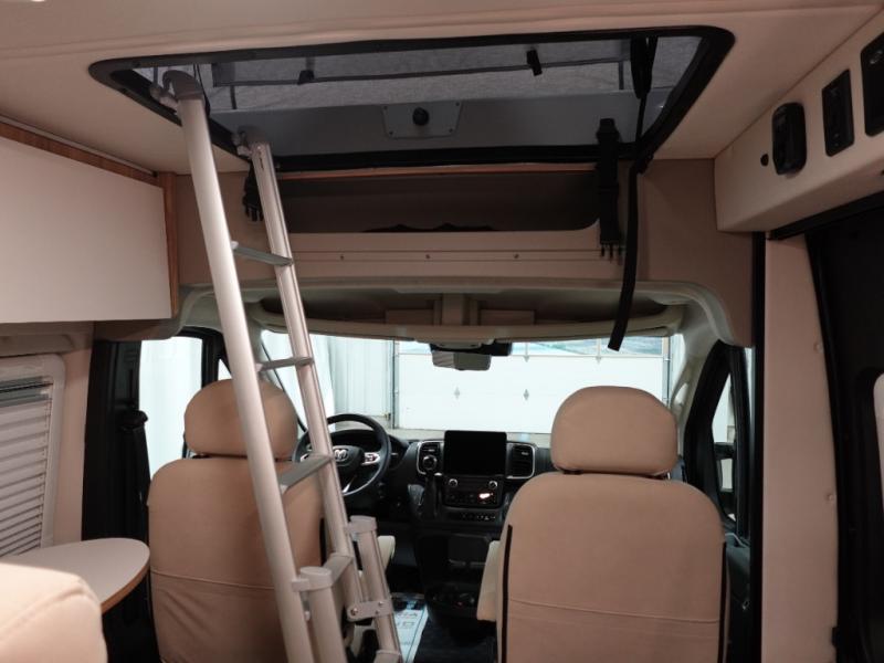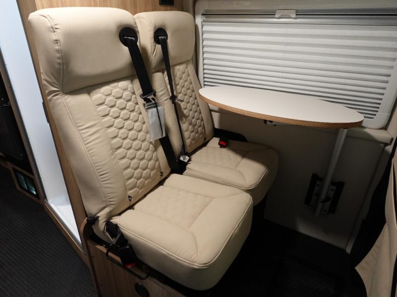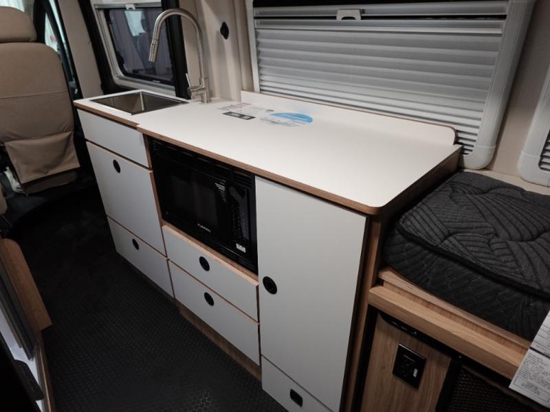 Start a new adventure across the states in this cozy coach! Once you arrive at the campground, you can make lunch on the induction cooktop or in the air fryer/convection microwave. There is also a 7.3 cu. ft. refrigerator with a pull-out freezer drawer to keep your food fresh. You'll find multiple overhead cabinets to keep your belongings tucked out of the way, and the compact wet bath will let you freshen up after a day outdoors. Up front, you'll find two captains seats plus two additional cab seats with a removable table and storage boxes. The 56" x 77" Murphy bed provides versatile sleeping space when you're ready to get some shut-eye. If you're needing additional sleeping space, you can use the pop-top. When the pop-top is chosen, the standard Truma A/C is changed out for a Coleman Mach 10 A/C; see dealer for more details.