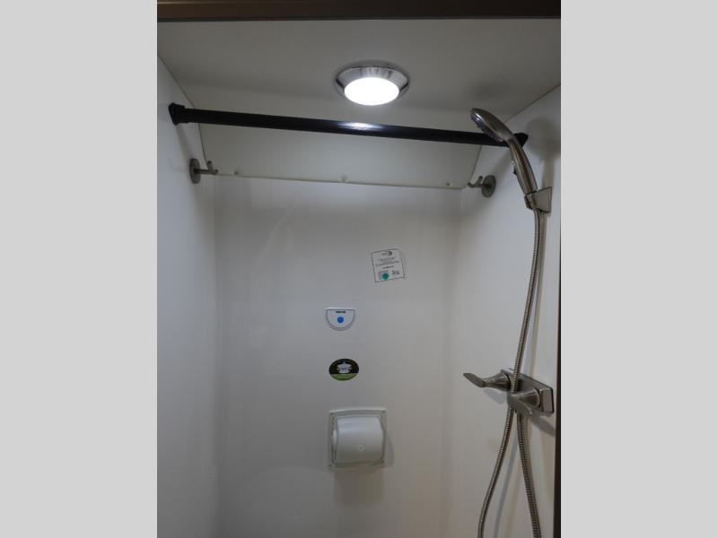 Start a new adventure across the states in this cozy coach! Once you arrive at the campground, you can make lunch on the induction cooktop or in the air fryer/convection microwave. There is also a 7.3 cu. ft. refrigerator with a pull-out freezer drawer to keep your food fresh. You'll find multiple overhead cabinets to keep your belongings tucked out of the way, and the compact wet bath will let you freshen up after a day outdoors. Up front, you'll find two captains seats plus two additional cab seats with a removable table and storage boxes. The 56" x 77" Murphy bed provides versatile sleeping space when you're ready to get some shut-eye.