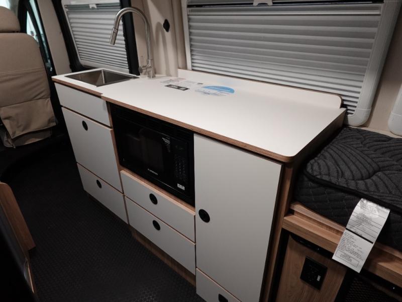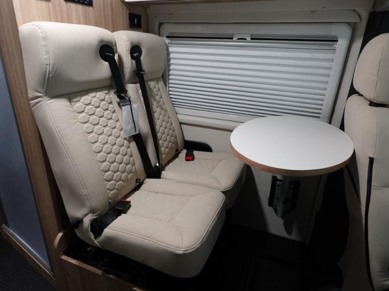Start a new adventure across the states in this cozy coach! Once you arrive at the campground, you can make lunch on the induction cooktop or in the air fryer/convection microwave. There is also a 7.3 cu. ft. refrigerator with a pull-out freezer drawer to keep your food fresh. You'll find multiple overhead cabinets to keep your belongings tucked out of the way, and the compact wet bath will let you freshen up after a day outdoors. Up front, you'll find two captains seats plus two additional cab seats with a removable table and storage boxes. The 56" x 77" Murphy bed provides versatile sleeping space when you're ready to get some shut-eye.