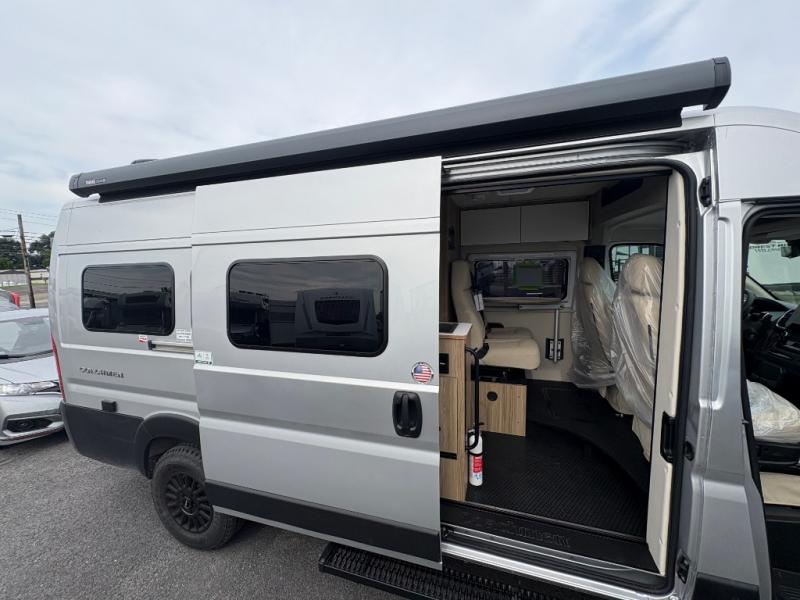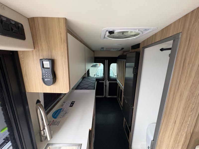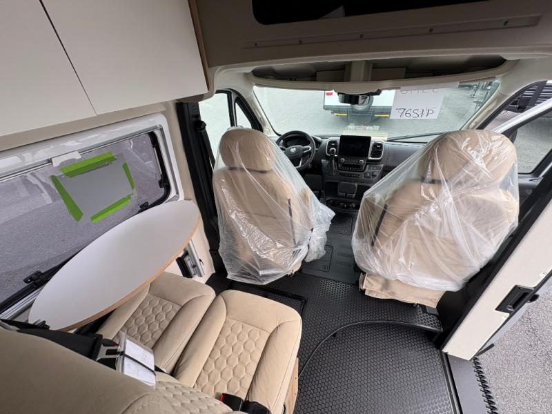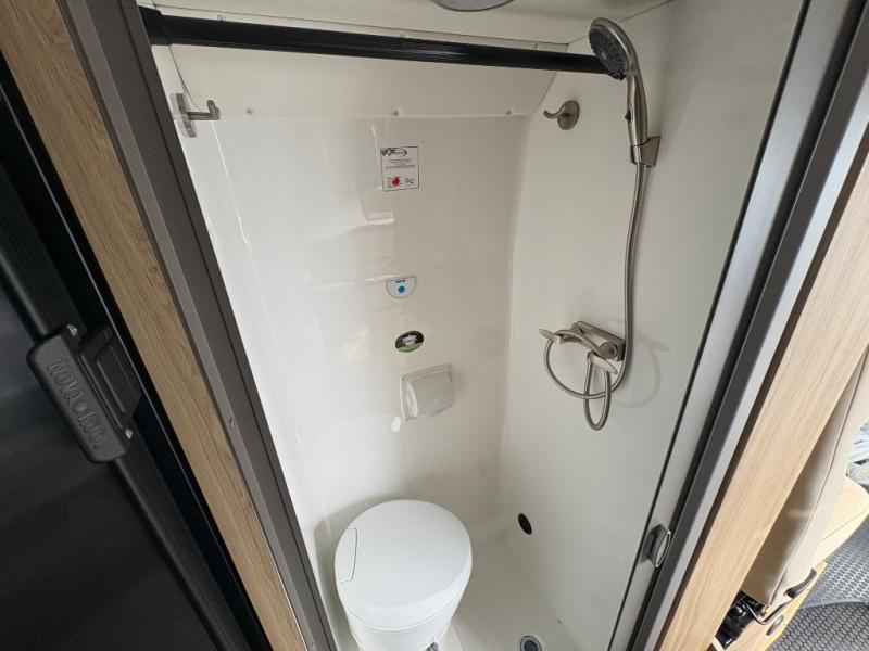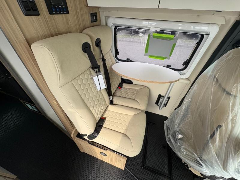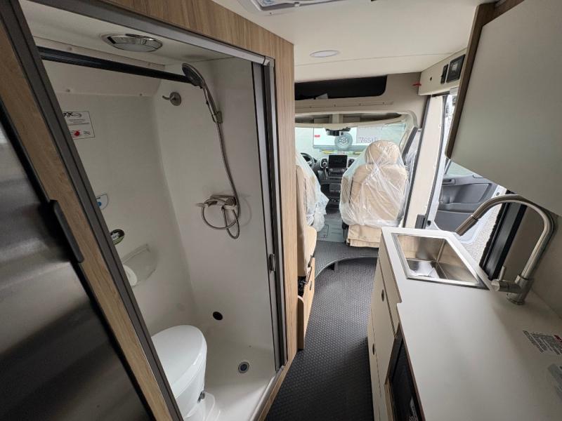 Start a new adventure across the states in this cozy coach! Once you arrive at the campground, you can make lunch on the induction cooktop or in the air fryer/convection microwave. There is also a 7.3 cu. ft. refrigerator with a pull-out freezer drawer to keep your food fresh. You'll find multiple overhead cabinets to keep your belongings tucked out of the way, and the compact wet bath will let you freshen up after a day outdoors. Up front, you'll find two captains seats plus two additional cab seats with a removable table and storage boxes. The 56" x 77" Murphy bed provides versatile sleeping space when you're ready to get some shut-eye. If you're needing additional sleeping space, you can choose the optional pop-top. When the optional pop-top is chosen, the standard Truma A/C is changed out for a Coleman Mach 10 A/C; see dealer for more details.
