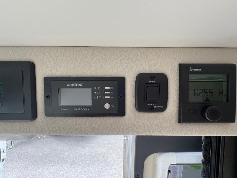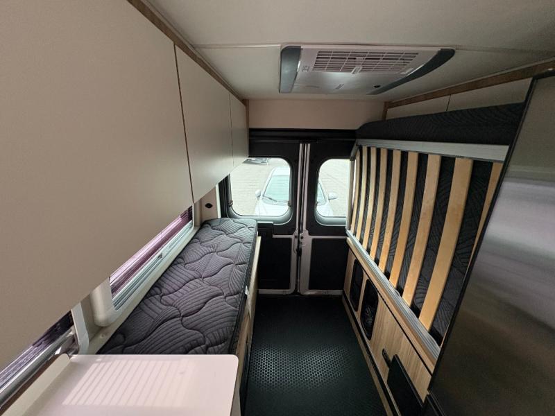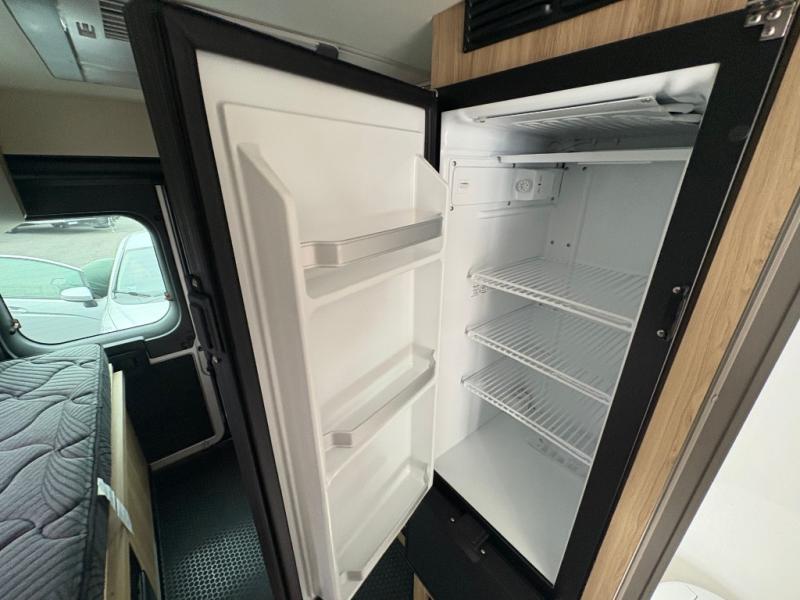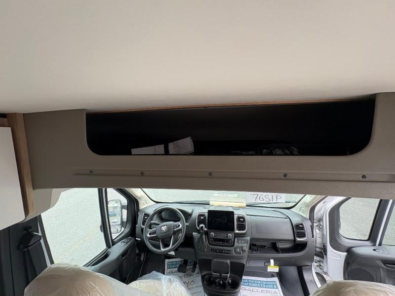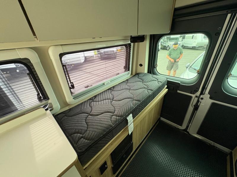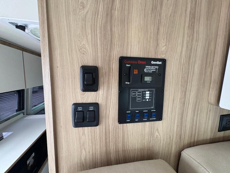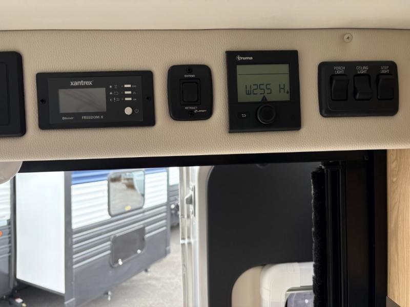 Start a new adventure across the states in this cozy coach! Once you arrive at the campground, you can make lunch on the induction cooktop or in the air fryer/convection microwave. There is also a 7.3 cu. ft. refrigerator with a pull-out freezer drawer to keep your food fresh. You'll find multiple overhead cabinets to keep your belongings tucked out of the way, and the compact wet bath will let you freshen up after a day outdoors. Up front, you'll find two captains seats plus two additional cab seats with a removable table and storage boxes. The 56" x 77" Murphy bed provides versatile sleeping space when you're ready to get some shut-eye. If you're needing additional sleeping space, you can choose the optional pop-top. When the optional pop-top is chosen, the standard Truma A/C is changed out for a Coleman Mach 10 A/C; see dealer for more details.