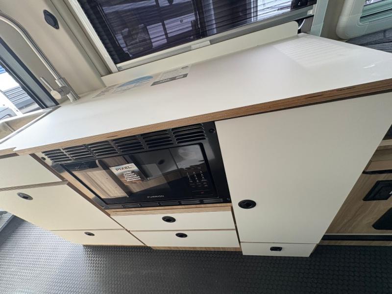 With any Pixel Class B gas motorhome by Coachmen RV, you will enjoy user friendly features, a stylish interior, and durable construction materials! The front and rear Sumo springs will help provide a smooth drive, and there is Rockwool R15 insulation plus a hush matt sound deadener to help reduce noise. An RVQG 2800i 2.8kW gas quiet generator and dual 115AH AGM batteries will keep you going, and you can choose the optional Li Lithium Battery System if you're needing more power. Inside, there is a large square sink, LED light strips throughout, solid hardwood cabinets, and a heated shower to name a few comforts.