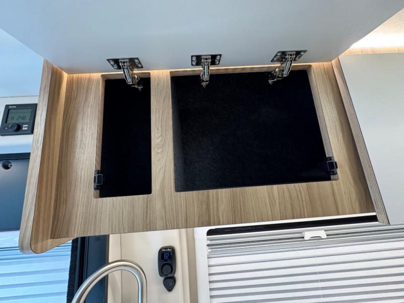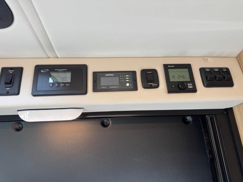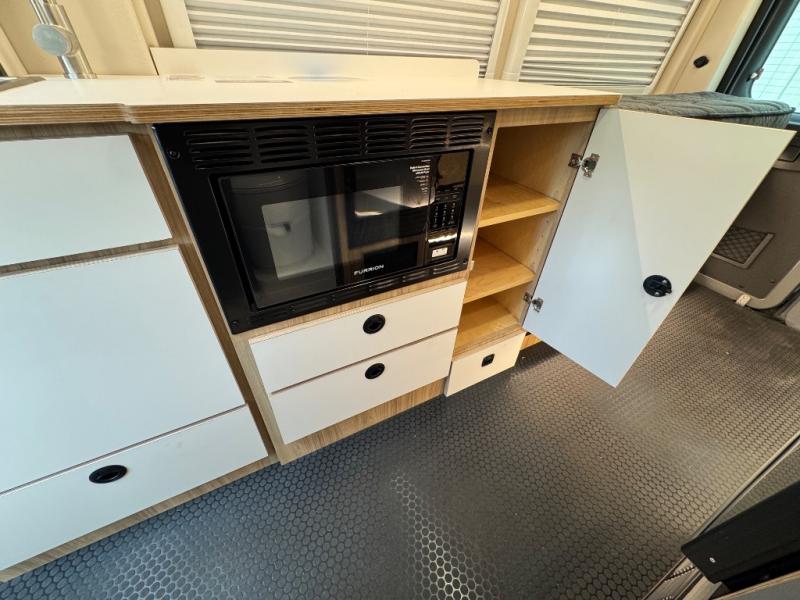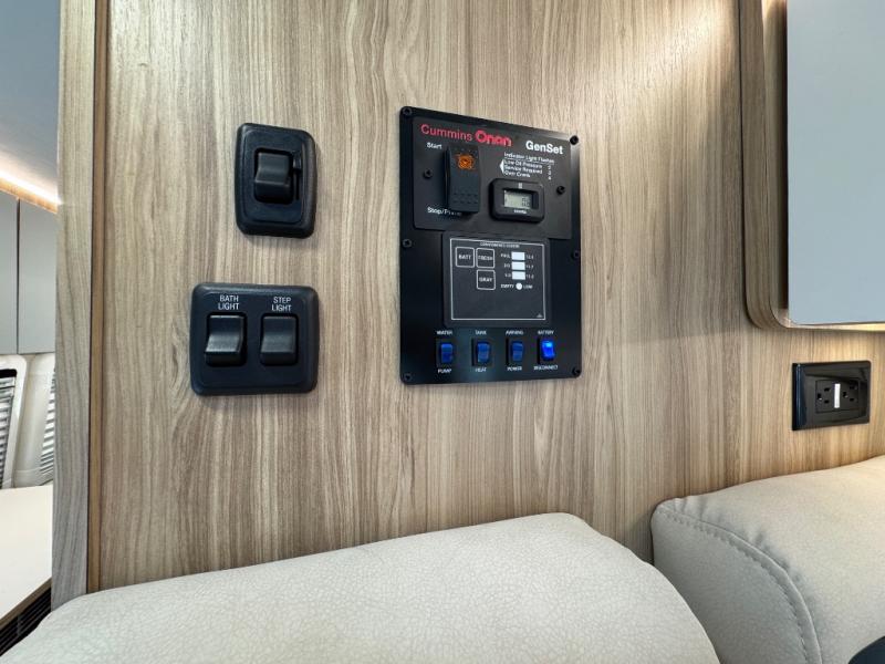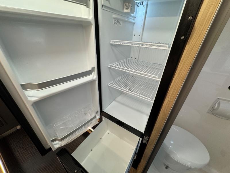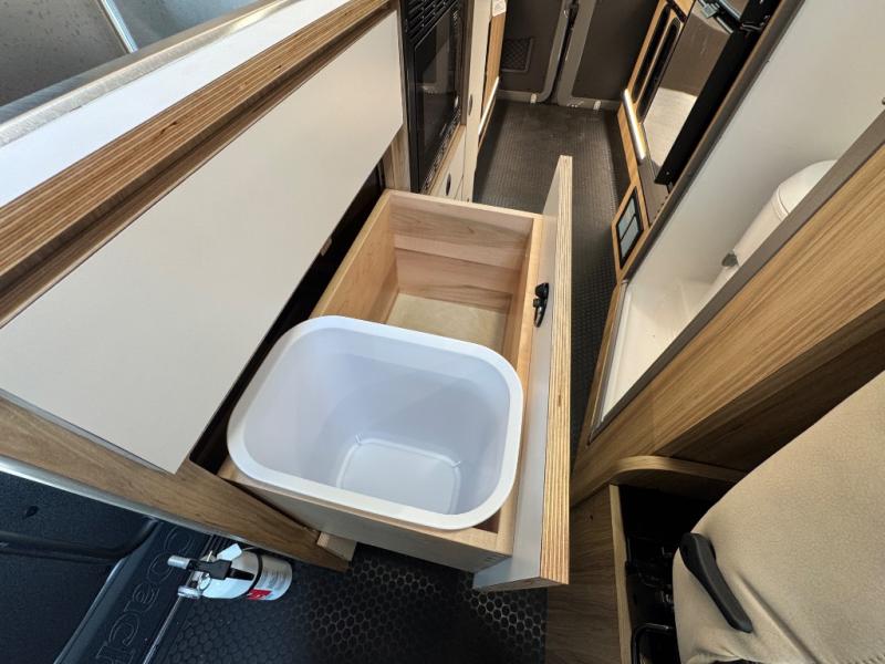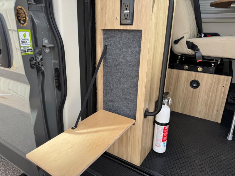 Start a new adventure across the states in this cozy coach! Once you arrive at the campground, you can make lunch on the induction cooktop or in the air fryer/convection microwave. There is also a 7.3 cu. ft. refrigerator with a pull-out freezer drawer to keep your food fresh. You'll find multiple overhead cabinets to keep your belongings tucked out of the way, and the compact wet bath will let you freshen up after a day outdoors. Up front, you'll find two captains seats plus two additional cab seats with a removable table and storage boxes. The 56" x 77" Murphy bed provides versatile sleeping space when you're ready to get some shut-eye. If you're needing additional sleeping space, you can choose the optional pop-top. When the optional pop-top is chosen, the standard Truma A/C is changed out for a Coleman Mach 10 A/C; see dealer for more details.