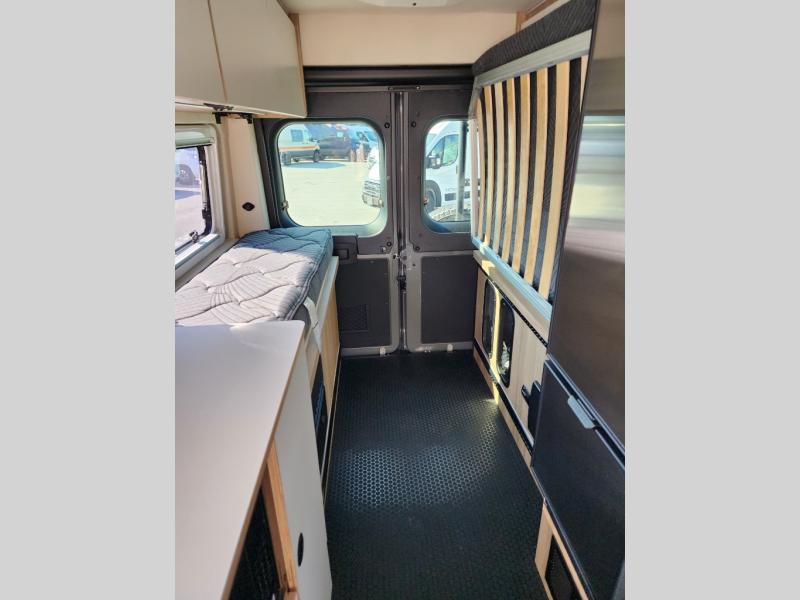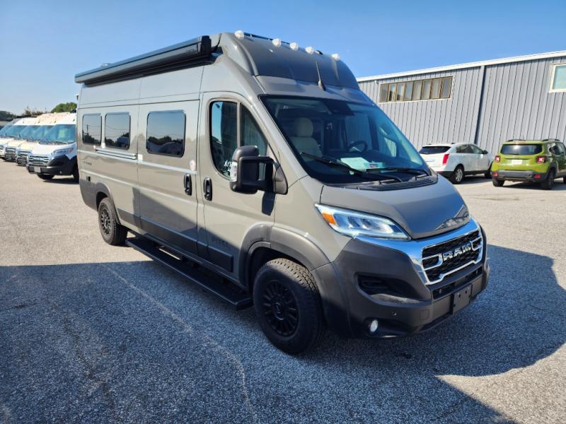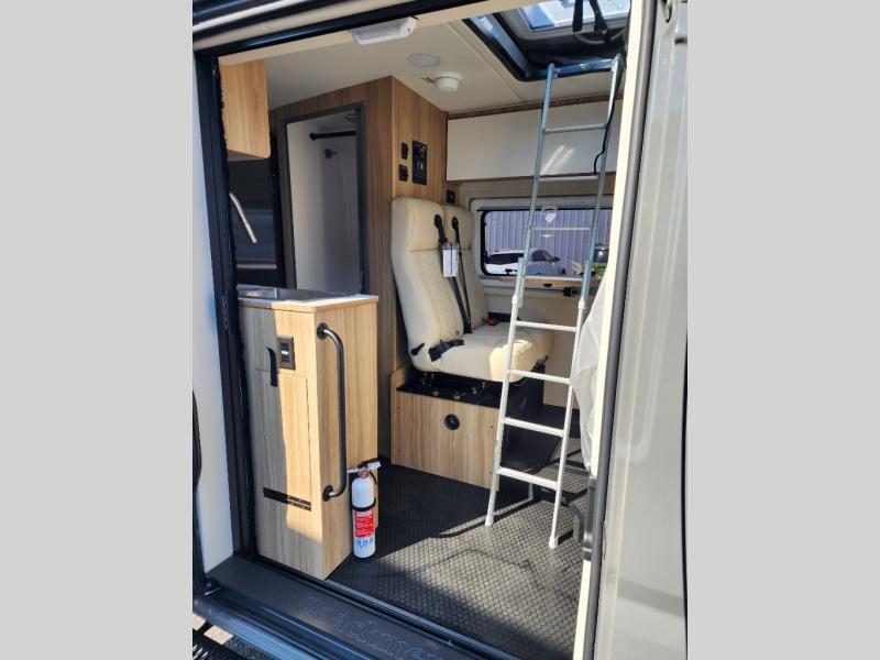 Start a new adventure across the states in this cozy coach! Once you arrive at the campground, you can make lunch on the induction cooktop or in the air fryer/convection microwave. There is also a 7.3 cu. ft. refrigerator with a pull-out freezer drawer to keep your food fresh. You'll find multiple overhead cabinets to keep your belongings tucked out of the way, and the compact wet bath will let you freshen up after a day outdoors. Up front, you'll find two captains seats plus two additional cab seats with a removable table and storage boxes. The 56" x 77" Murphy bed provides versatile sleeping space when you're ready to get some shut-eye. If you're needing additional sleeping space, you can choose the optional pop-top. When the optional pop-top is chosen, the standard Truma A/C is changed out for a Coleman Mach 10 A/C; see dealer for more details.