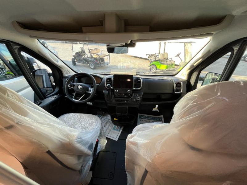 Start a new adventure across the states in this cozy coach! Once you arrive at the campground, you can make lunch on the induction cooktop or in the air fryer/convection microwave. There is also a 7.3 cu. ft. refrigerator with a pull-out freezer drawer to keep your food fresh. You'll find multiple overhead cabinets to keep your belongings tucked out of the way, and the compact wet bath will let you freshen up after a day outdoors. Up front, you'll find two captains seats plus two additional cab seats with a removable table and storage boxes. The 56" x 77" Murphy bed provides versatile sleeping space when you're ready to get some shut-eye. If you're needing additional sleeping space, you can choose the optional pop-top. When the optional pop-top is chosen, the standard Truma A/C is changed out for a Coleman Mach 10 A/C; see dealer for more details.