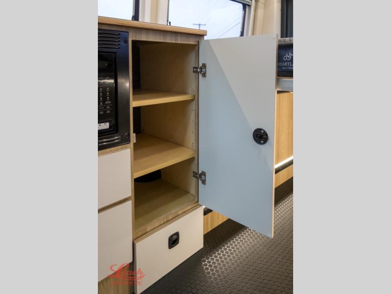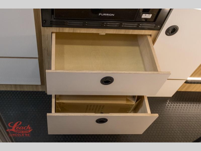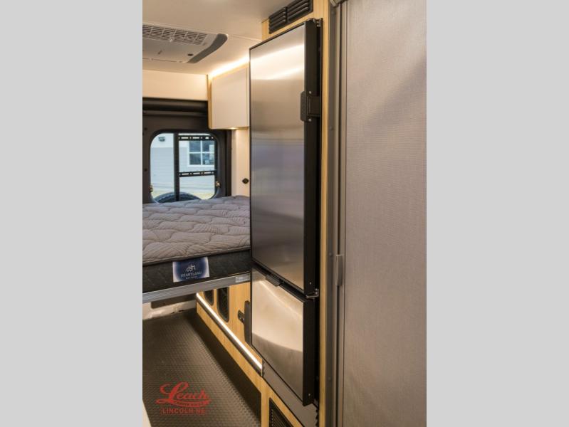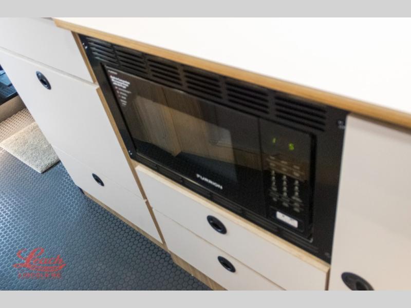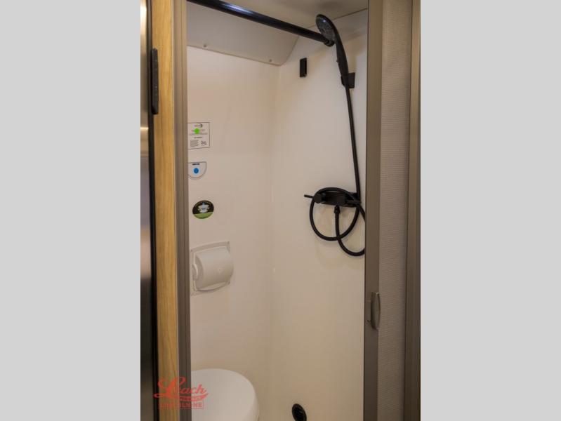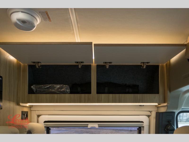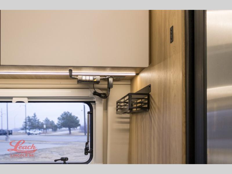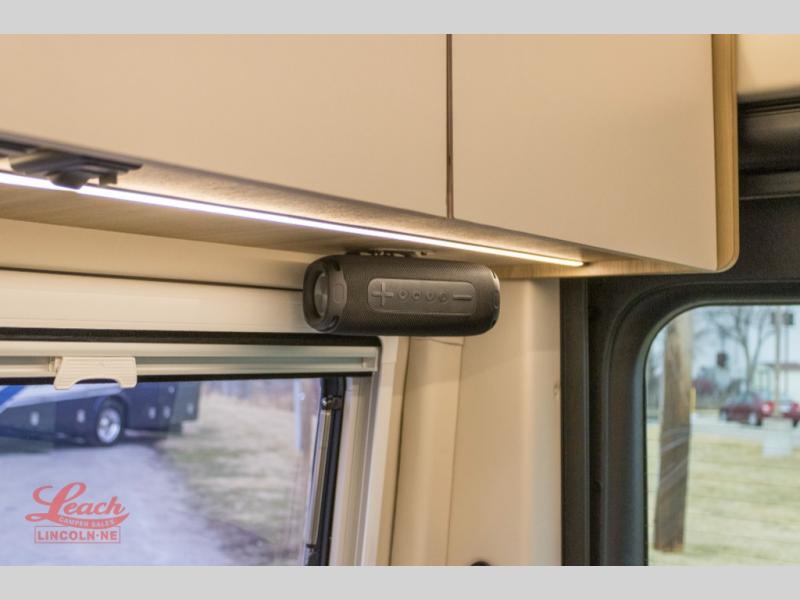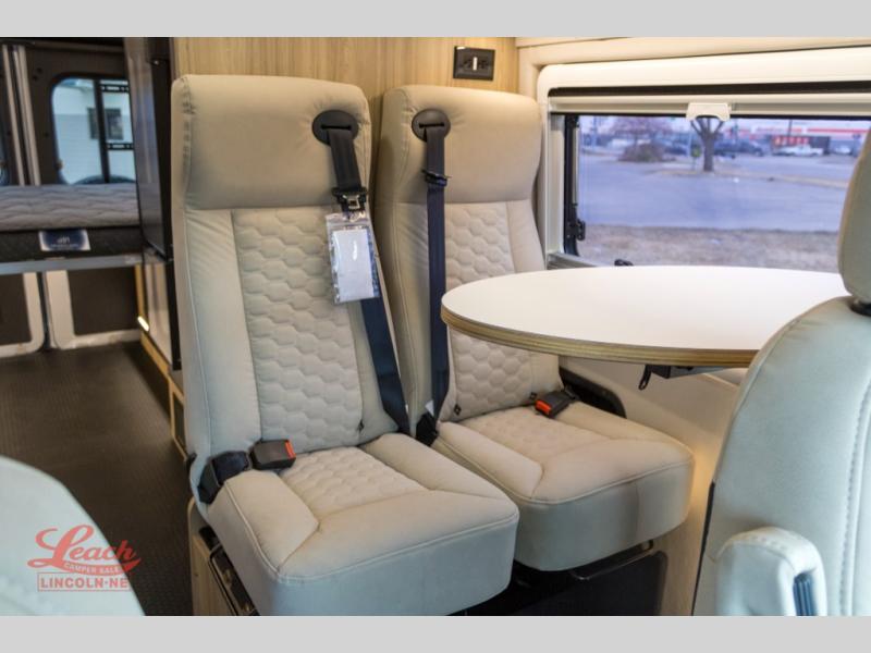 Start a new adventure across the states in this cozy coach! Once you arrive at the campground, you can make lunch on the induction cooktop or in the air fryer/convection microwave. There is also a 7.3 cu. ft. refrigerator with a pull-out freezer drawer to keep your food fresh. You'll find multiple overhead cabinets to keep your belongings tucked out of the way, and the compact wet bath will let you freshen up after a day outdoors. Up front, you'll find two captain's seats plus two additional cab seats with a removable table and storage boxes. The 56" x 74" Murphy bed provides versatile sleeping space when you're ready to get some shut eye. If you're needing additional sleeping space, you can choose the optional pop-top. When the optional pop-top is chosen, the standard Truma A/C is changed out for a Coleman Mach 10 A/C; see dealer for more details.