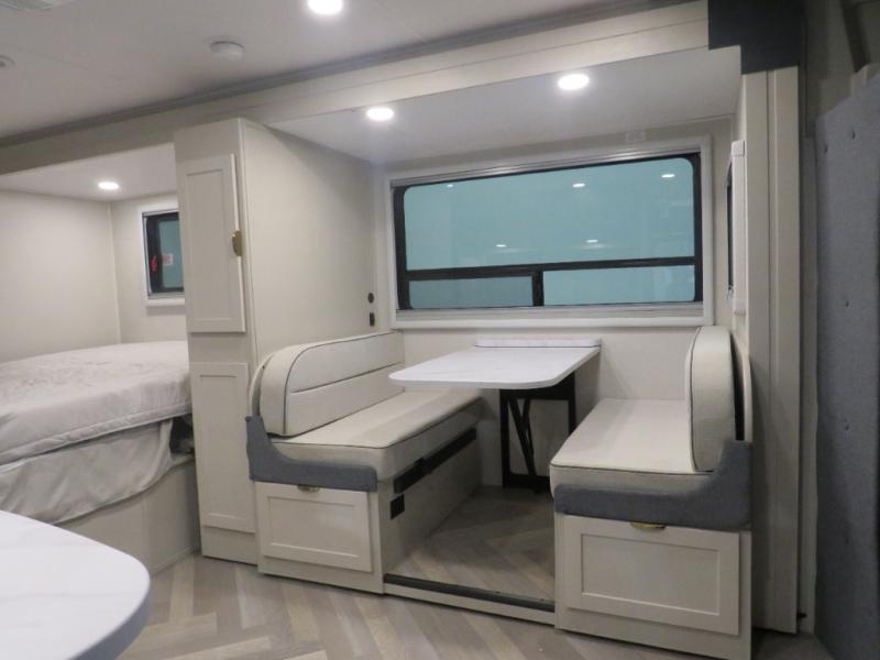With extra space from the full-wall slide, you'll love spending time in this Prism Select Class C diesel motorhome! You can bring along the whole gang because the RV queen bed, the dinette, and bunk above the cab will provide plenty of sleeping space, and the ample storage will be very helpful for everyone's belongings. You can also stock up on some treats and goodies with the pantry, and the full bathroom is a great convenience to have whenever you need to get cleaned up.