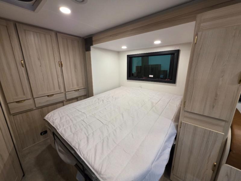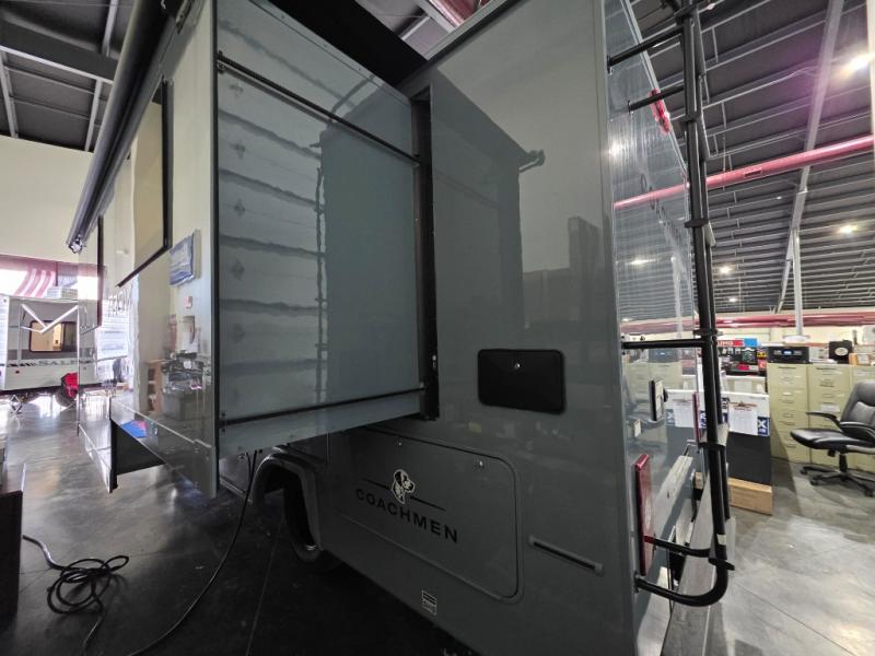With any of the Prism Elite Class C diesel motorhomes, the Coachmen legacy of upscale luxury with Mercedes-Benz drivability is found throughout. With the aerodynamic and stylish rear fiberglass cap and integrated fiberglass running boards, plus full body paint choices, you are sure to turn heads as you travel to your destination. There are also upgraded MorRyde cargo doors outside, along with an armless awning to enjoy some shade. The interior provides solid surface countertops with lit edge banding, a soft touch ceiling, LED batton strip lights, and Curio glass in the overhead kitchen cabinets. A Truma Aqua Go on-demand water heater will provide endless hot showers, and the 15K BTU low profile A/C will keep you cool all summer long. Choose a reliable and luxurious Prism Elite today!
