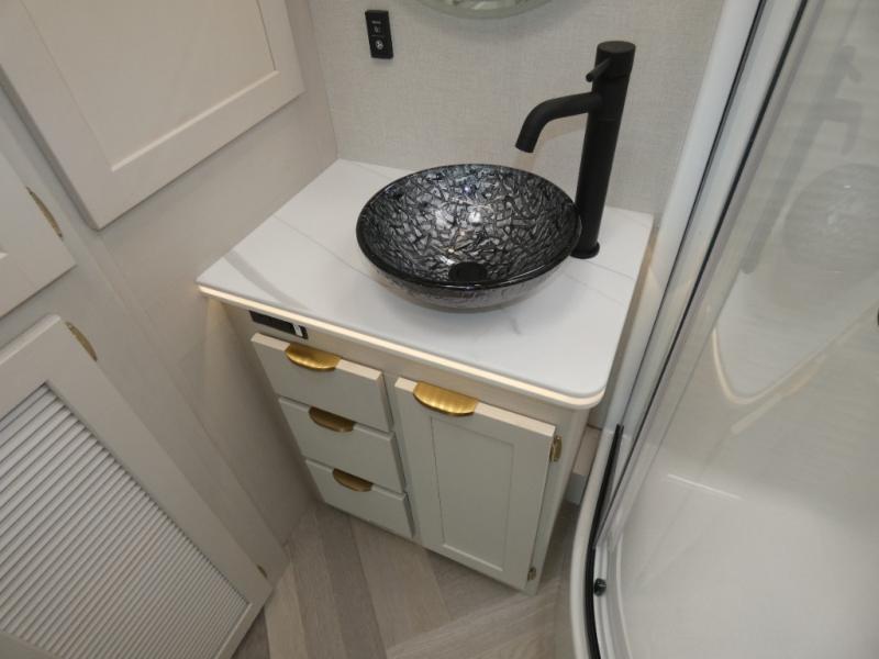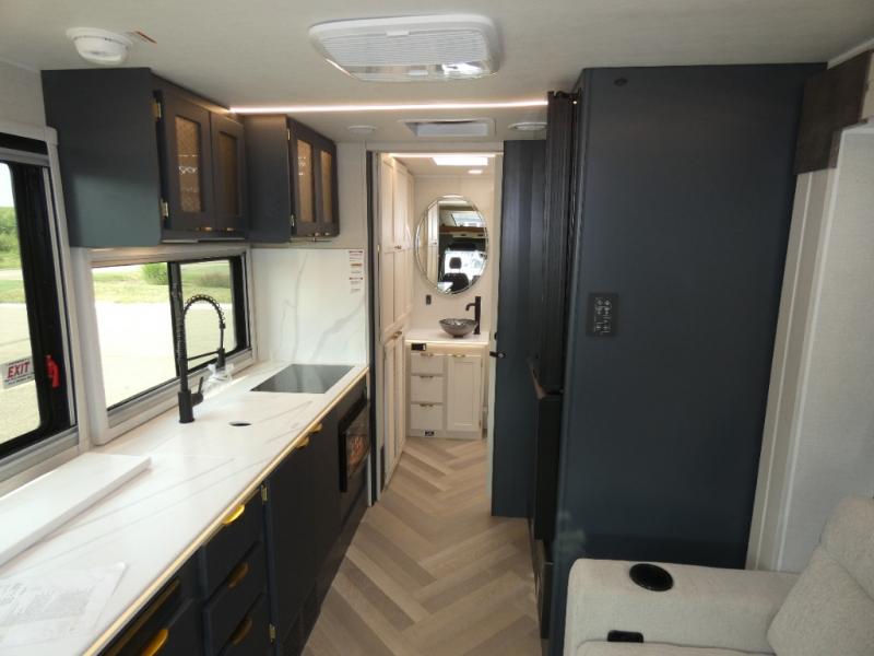 With any of the Prism Elite Class C diesel motorhomes, the Coachmen legacy of upscale luxury with Mercedes-Benz drivability is found throughout. With the aerodynamic and stylish rear fiberglass cap and integrated fiberglass running boards, plus full body paint choices, you are sure to turn heads as you travel to your destination. There are also upgraded MorRyde cargo doors outside, along with an armless awning to enjoy some shade. The interior provides solid surface countertops with lit edge banding, a soft touch ceiling, LED batton strip lights, and Curio glass in the overhead kitchen cabinets. A Truma Aqua Go on-demand water heater will provide endless hot showers, and the 15K BTU low profile A/C will keep you cool all summer long. Choose a reliable and luxurious Prism Elite today!