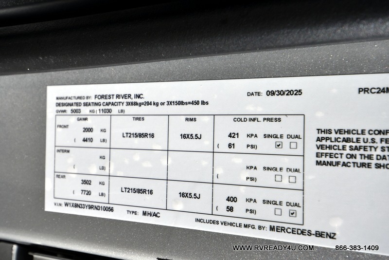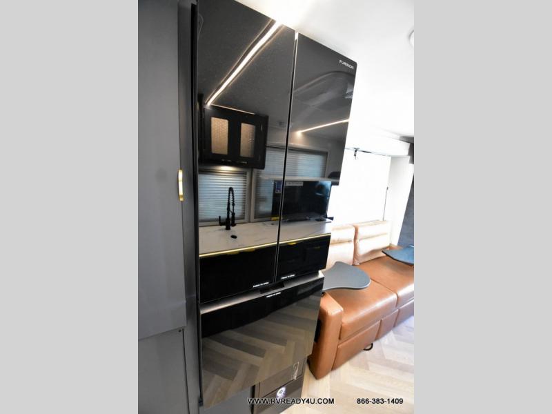 With any of the Prism Elite Class C diesel motorhomes, the Coachmen legacy of upscale luxury with Mercedes-Benz drivability is found throughout. With the aerodynamic and stylish rear fiberglass cap and integrated fiberglass running boards, plus full body paint choices, you are sure to turn heads as you travel to your destination. There are also upgraded MorRyde cargo doors outside, along with an armless awning to enjoy some shade. The interior provides solid surface countertops with lit edge banding, a soft touch ceiling, LED batton strip lights, and Curio glass in the overhead kitchen cabinets. A Truma Aqua Go on-demand water heater will provide endless hot showers, and the 15K BTU low profile A/C will keep you cool all summer long. Choose a reliable and luxurious Prism Elite today!