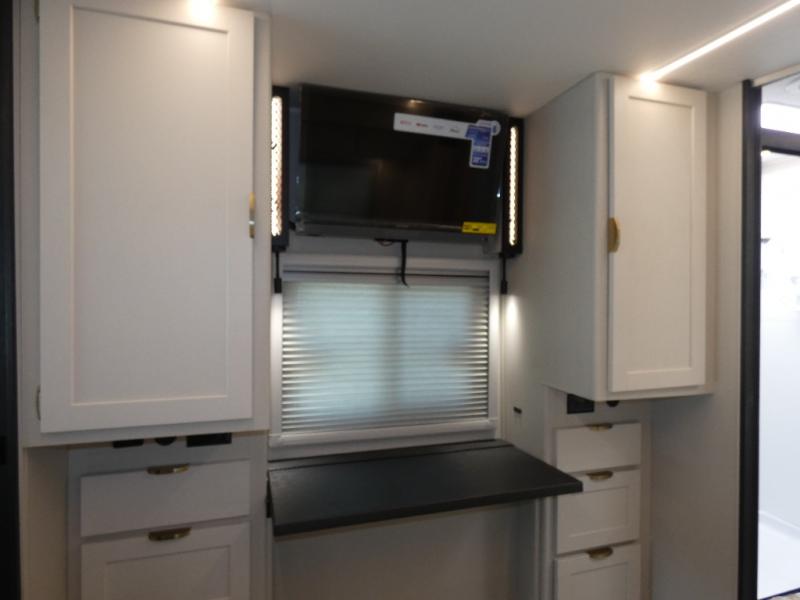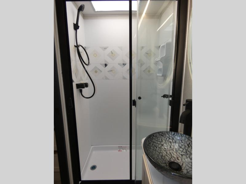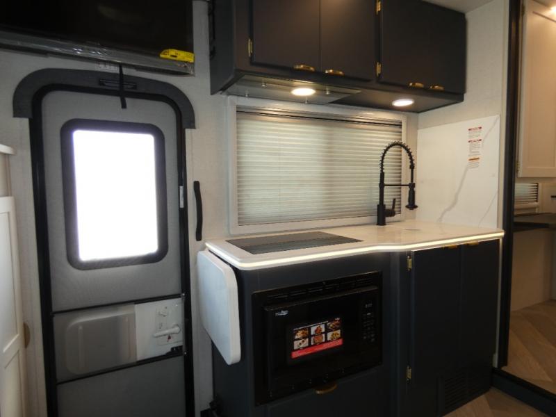 You'll love traveling in this luxury coach with friends or family. Once you stop for the day, you can make dinner on the two-burner cooktop, grab a cold drink from the refrigerator, and relax on the incliners. The master bedroom includes an RV queen bed slide out, dual wardrobes, and a workstation if you need to get some work done. And don't overlook the full rear bath, complete with a 24" x 36" shower, toilet, sink, and linen closet for clean towels.