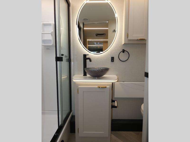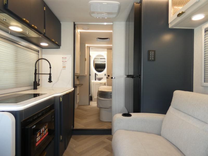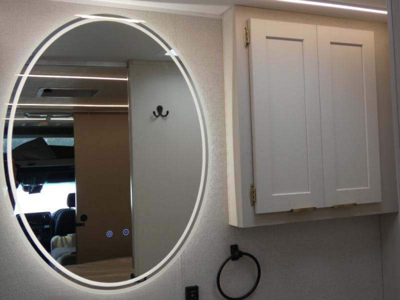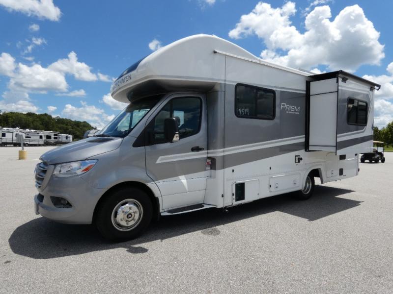 With any of the Prism Elite Class C diesel motorhomes, the Coachmen legacy of upscale luxury with Mercedes-Benz drivability is found throughout. With the aerodynamic and stylish rear fiberglass cap and integrated fiberglass running boards, plus full body paint choices, you are sure to turn heads as you travel to your destination. There are also upgraded MorRyde cargo doors outside, along with an armless awning to enjoy some shade. The interior provides solid surface countertops with lit edge banding, a soft touch ceiling, LED batton strip lights, and Curio glass in the overhead kitchen cabinets. A Truma Aqua Go on-demand water heater will provide endless hot showers, and the 15K BTU low profile A/C will keep you cool all summer long. Choose a reliable and luxurious Prism Elite today!