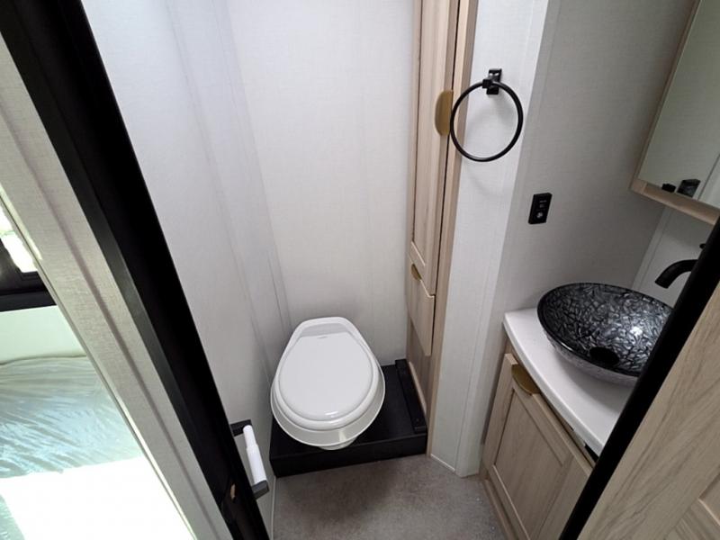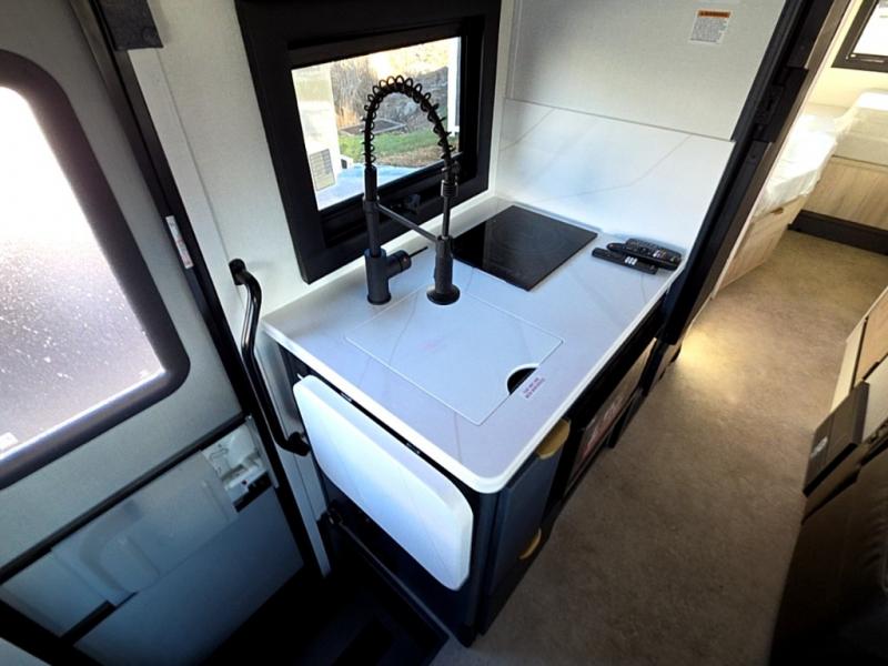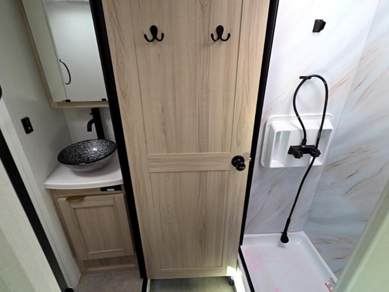 If you enjoy traveling in style and having your own bed at night, this coach is perfect for you! There are two twin beds in the back with overhead cabinets to keep your items organized. The independent shower is right across from the private toilet and sink, allowing two people to freshen up at once. You can prepare your breakfast inside on the induction cooktop, or head outdoors to enjoy the exterior kitchen! There is a dream table with recliners to dine at and relax, and you'll love having a coach TV to watch movies at night. And don't overlook the 45" x 76" bunk over cab for extra sleeping or storage space!