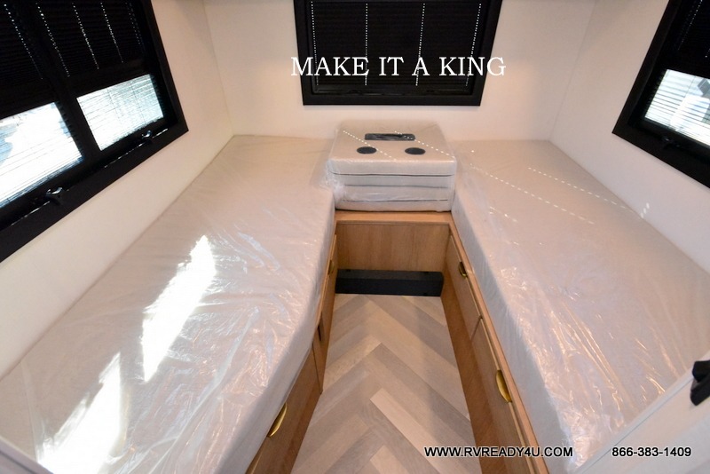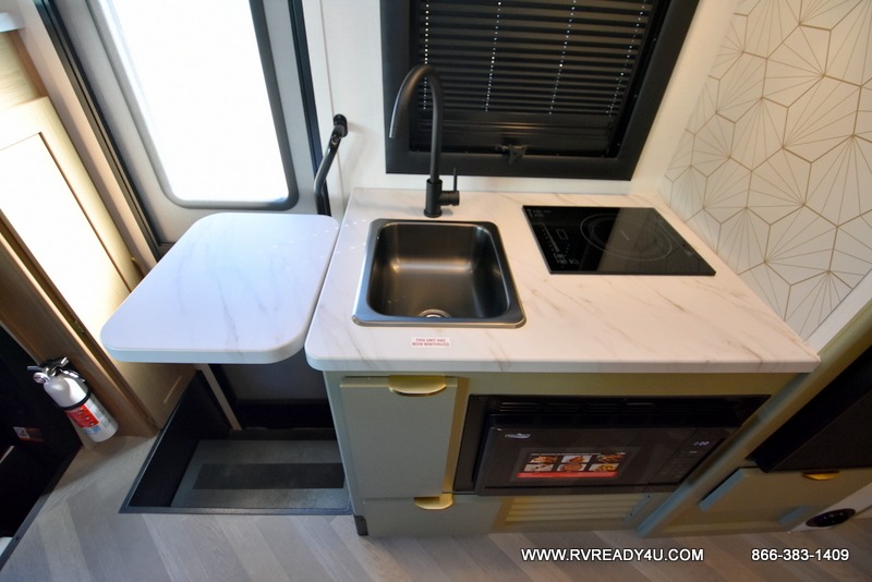 If you enjoy traveling in style and having your own bed at night, this coach is perfect for you! There are two twin beds in the back with overhead cabinets to keep your items organized. The independent shower is right across from the private toilet and sink, allowing two people to freshen up at once. You can prepare your breakfast inside on the induction cooktop, or head outdoors to enjoy the exterior kitchen! There is a dream table with recliners to dine at and relax, and you'll love having a coach TV to watch movies at night. And don't overlook the 45" x 76" bunk over cab for extra sleeping or storage space!