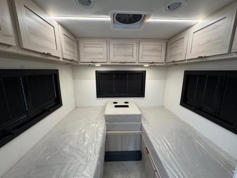 If you enjoy traveling in style and having your own bed at night, this coach is perfect for you! There are two twin beds in the back with overhead cabinets to keep your items organized. The independent shower is right across from the private toilet and sink, allowing two people to freshen up at once. You can prepare your breakfast inside on the induction cooktop, or head outdoors to enjoy the exterior kitchen! There is a dream table with recliners to dine at and relax, and you'll love having a coach TV to watch movies at night. And don't overlook the 45" x 76" bunk over cab for extra sleeping or storage space!