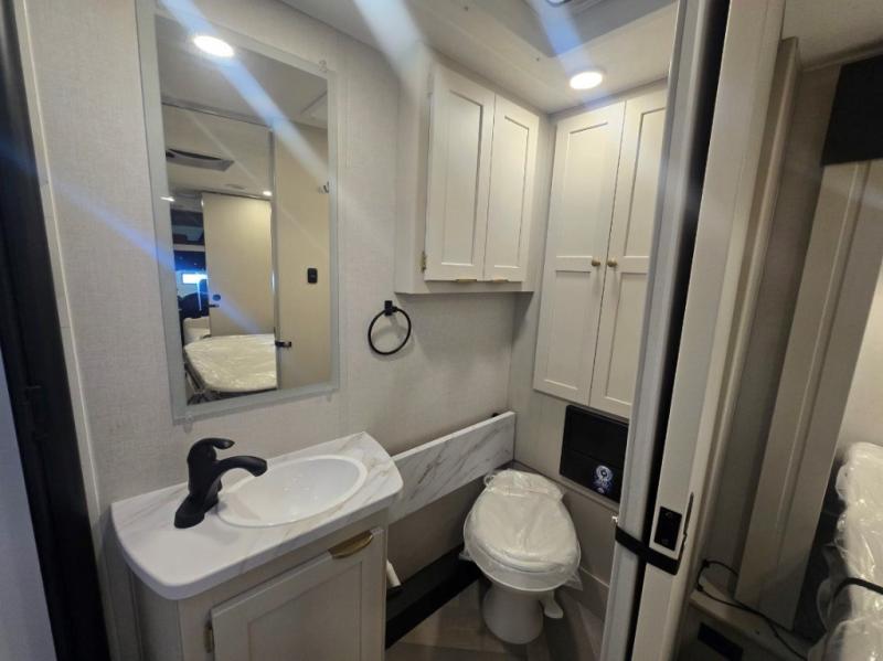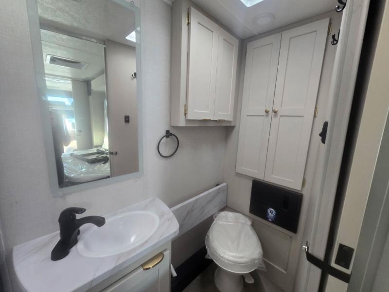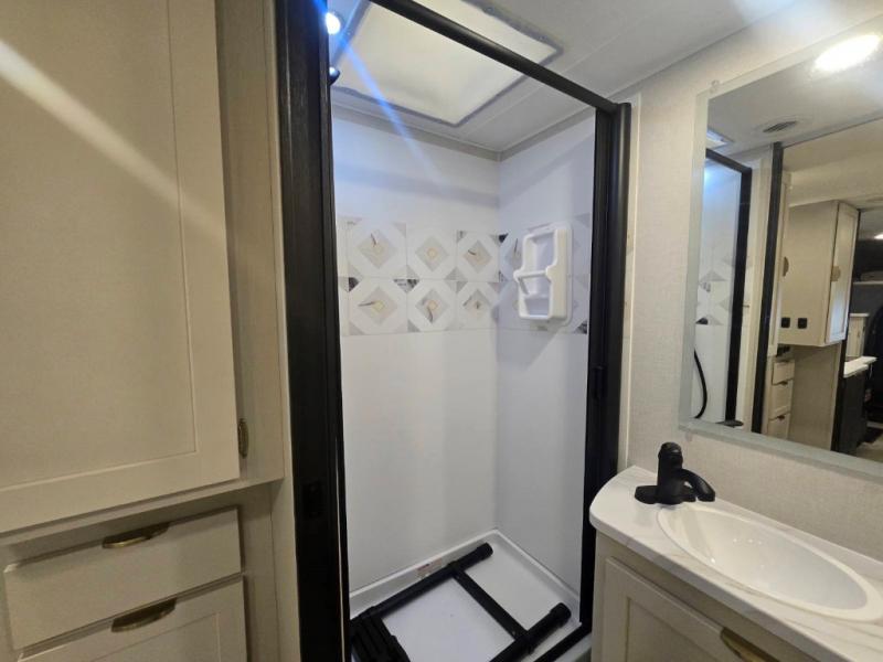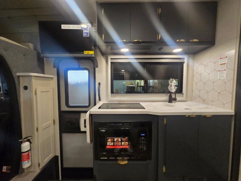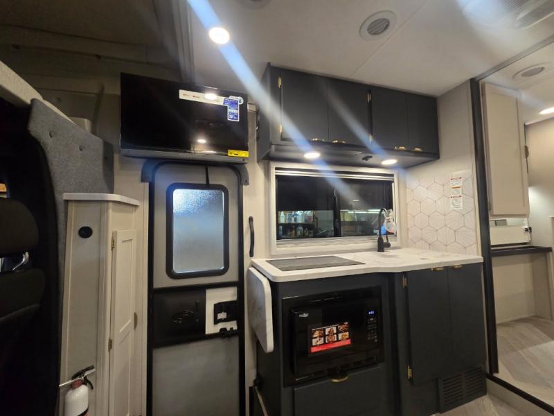 You'll love traveling in this luxury coach with friends or family. Once you stop for the day, you can make dinner on the two-burner induction cooktop, grab a cold drink from the 12V refrigerator, and relax on the sofa with incliners. The master bedroom includes an RV queen bed slide out, dual wardrobes, and a workstation if you need to get some work done. And don't overlook the full rear bath, complete with a 24" x 36" shower, toilet, sink, and linen closet for clean towels.