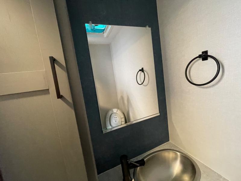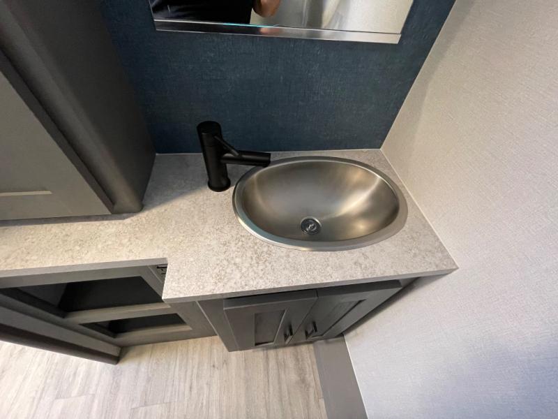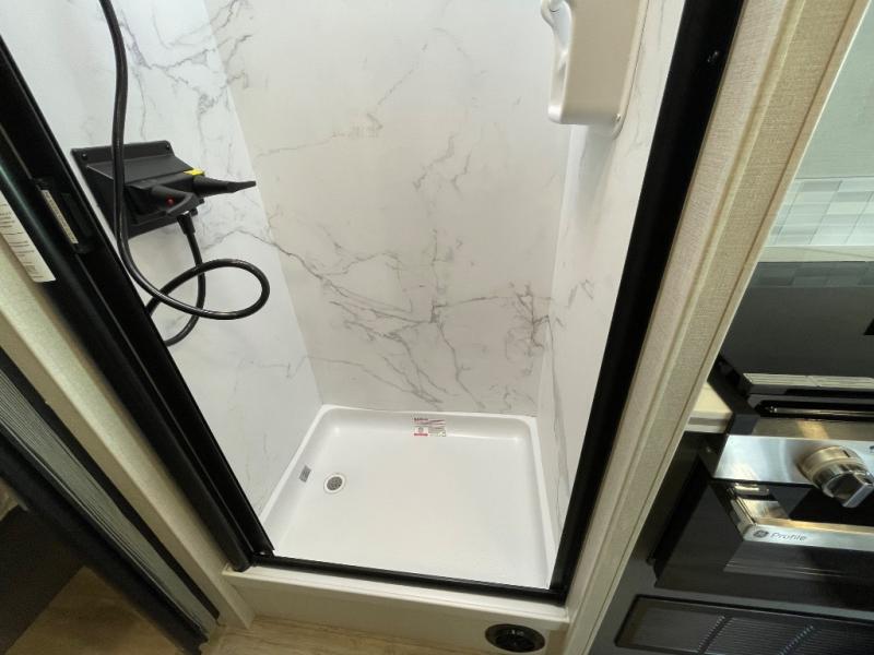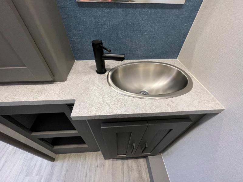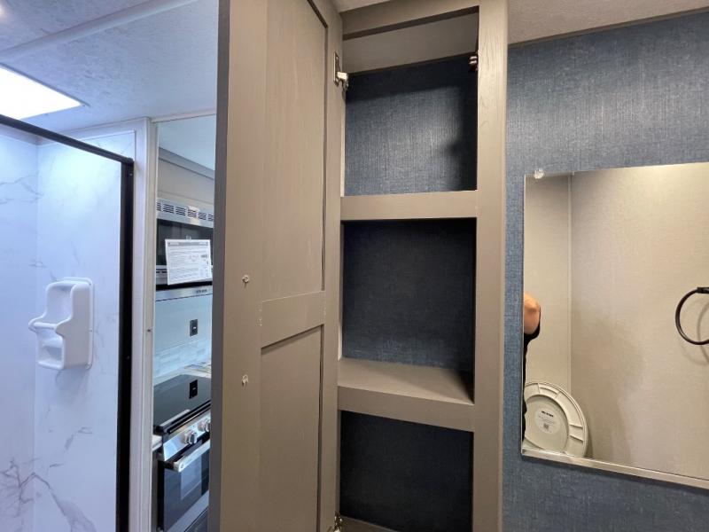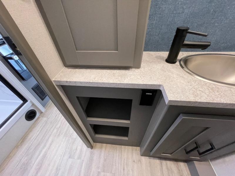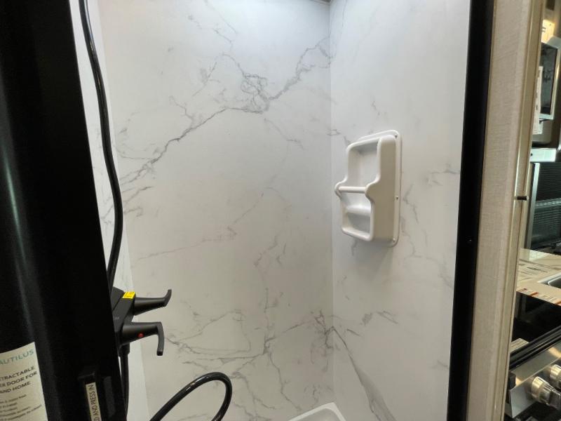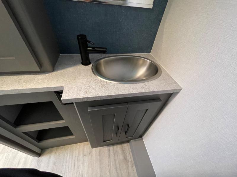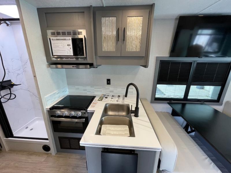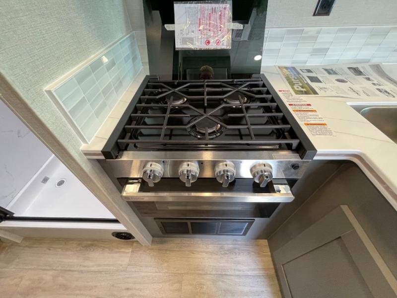 Live your best life on the road with this motorhome! The rear private bedroom has a 60" x 74" queen bed to lay your head on at night with wardrobes on either side of it for your clothes. A separated bathroom makes it easy for one person to freshen up in the 24" x 32" shower while another uses the private toilet and sink. Enjoy home cooked meals while out on the road with the stainless steel three burner cooktop, the 12V stainless steel double door 10 cu. ft. refrigerator, and even the stainless steel microwave oven. Eat your meals, play card games, and even transform the 42" x 70" booth dinette into an extra sleeping space. The 63" sofa has storage below for an extra blanket or board games. If you need to get some work done while you're away then you will appreciate the computer work station with 12V, 110V, and USB outlets in front of the passenger chair!