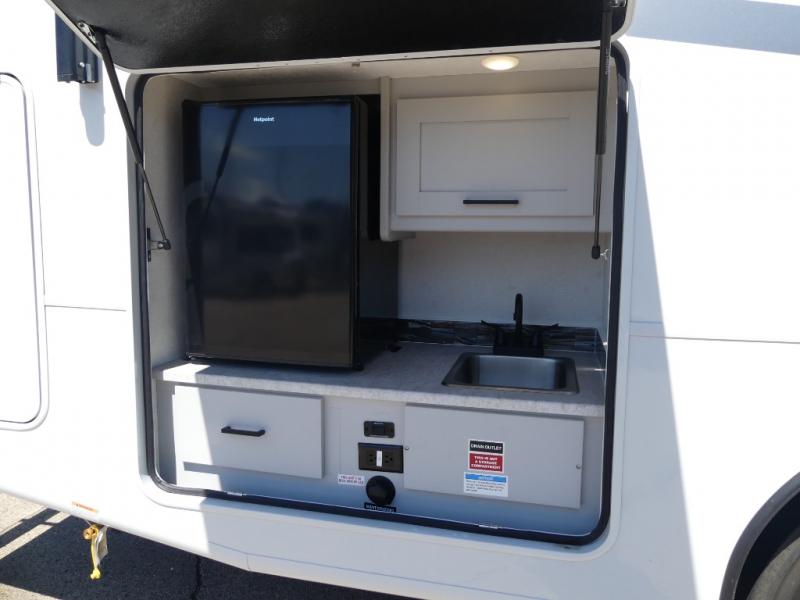 You will be impressed with all that this motorhome has to offer! Starting with the exterior kitchen with a double sink for easy clean-up and the exterior LED TV to stay up to date with the big game as you cook. The rear private bedroom will have you feeling right at home with the 60" x 74" queen bed that has a CPAP station above it and across from wardrobes on either side of the LED TV and storage space. There is a broom closet for your convenience just outside the full bathroom which has a 38" x 24" shower with a skylight for more head room and natural lighting. The fully equipped kitchen has everything you need to prepare your best meals including a stainless steel microwave oven, and you can enjoy them at the 30" x 70" booth dinette. Relax in true comfort on the 63" sofa with storage below for extra games or blanket!