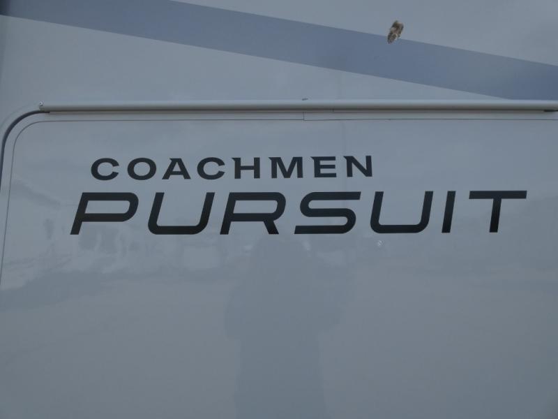 Pursue big dreams with one of these Coachmen RV Pursuit Class A gas motorhomes! The high gloss dove grey sidewalls with Azdel superlight composite, fiberglass front cap, and crowned, laminated TPO roof will hold up for years to come. A Ford F53 7.3L V8 engine propels your unit with an abundance of power to each destination. Stay warm in the cooler months with a 30,000 BTU furnace and stay cool in the warmer months with a single 15,000 BTU A/C or dual 15,000 BTU A/C units, depending on the model you choose. All of your extra gear can easily be stored in the spacious exterior storage compartments to keep from taking up space on the inside. The exterior propane hook-up will come in handy and some models even have an outside entertainment center with a TV. Come find the right one for you today!