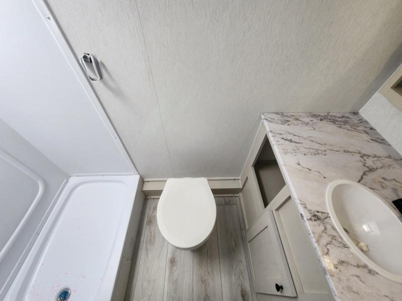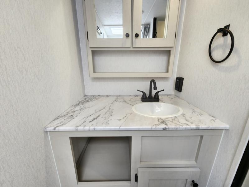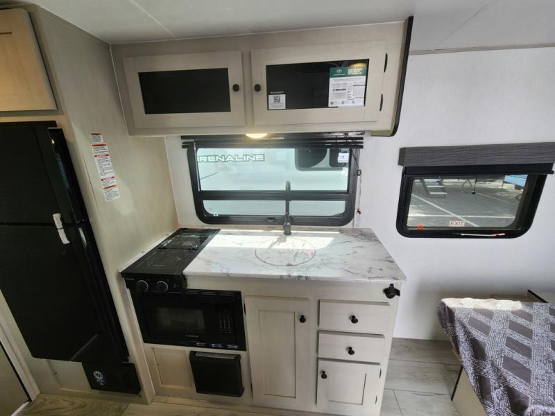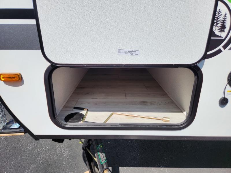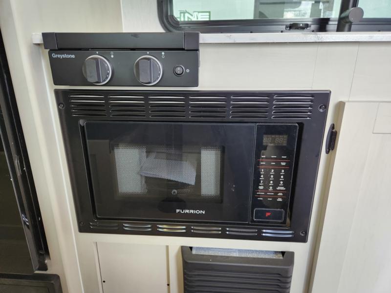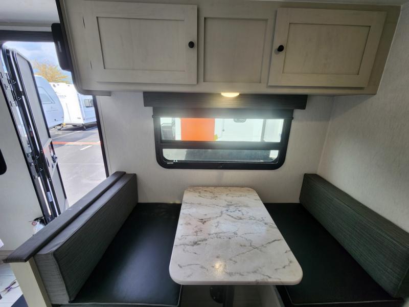 Enjoy camping in this cute Remote trailer features a rear full bath including shower with skylight for more natural lighting, a vanity with sink, and overhead storage. A 54" x 74" bed will be waiting for two of you to provide a comfortable night's rest, and if you have a third camper you can convert the booth dinette for sleeping for one more, or maybe two small children. Dine inside at the booth dinette and play card games at the table, or enjoy spending time outside under the 13' power awning with LED light. You can even cook burgers and dogs while enjoying nice weather with the help of the outdoor cast iron griddle.