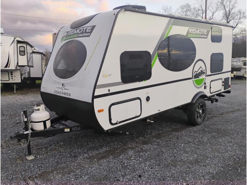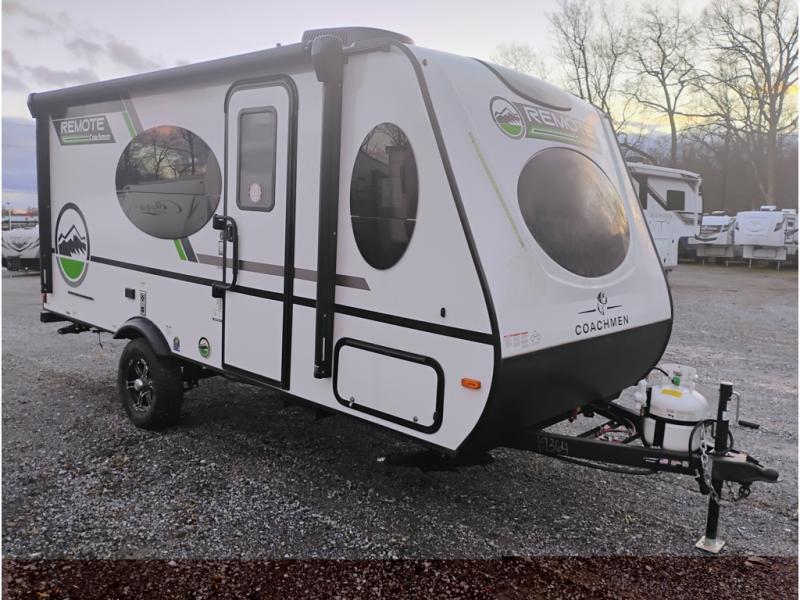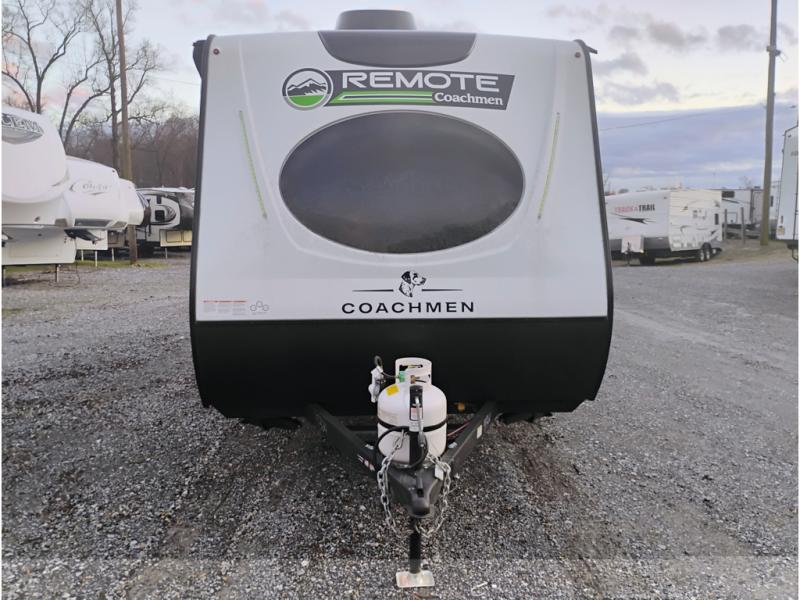 Any Remote travel trailer by Coachmen RV was designed with getting you out to explore in mind. These cute but mighty campers will easily allow you to enjoy some downtime from every day life. With the Aluma-cage construction including a vacuum-bonded laminated roof, and dual Azdel/fiberglass walls, your Remote trailer is not only sturdy but will be easy to maintain. Four stabilizer jacks will have you feeling secure at your campsite, and the power awning with LED light will allow you to create an inviting outdoor space with protection from the elements to use both day and night. There is ample storage throughout the interior, plus plenty of exterior storage as well. The outdoor griddle gives you cooking options, and the magnetic door latches on exterior storage compartments will keep your gear secure!