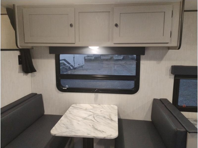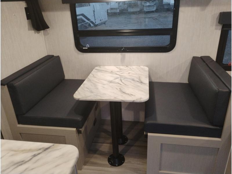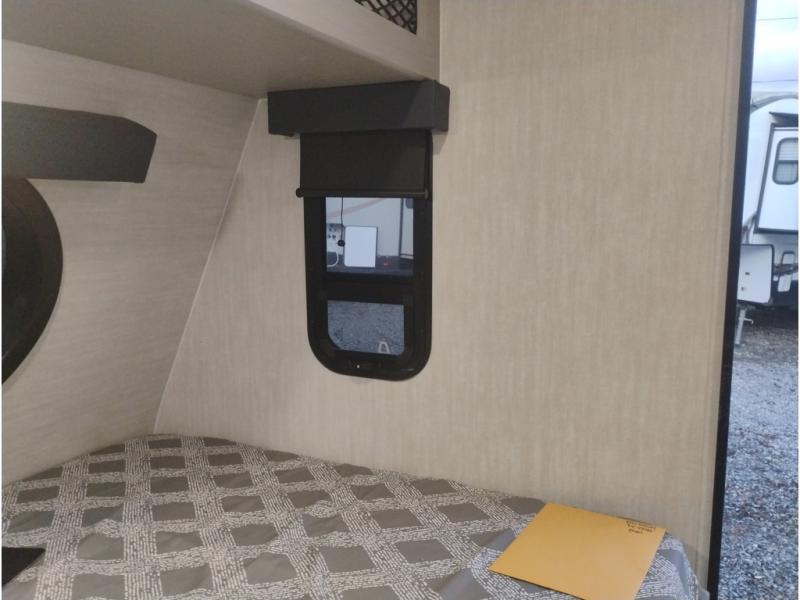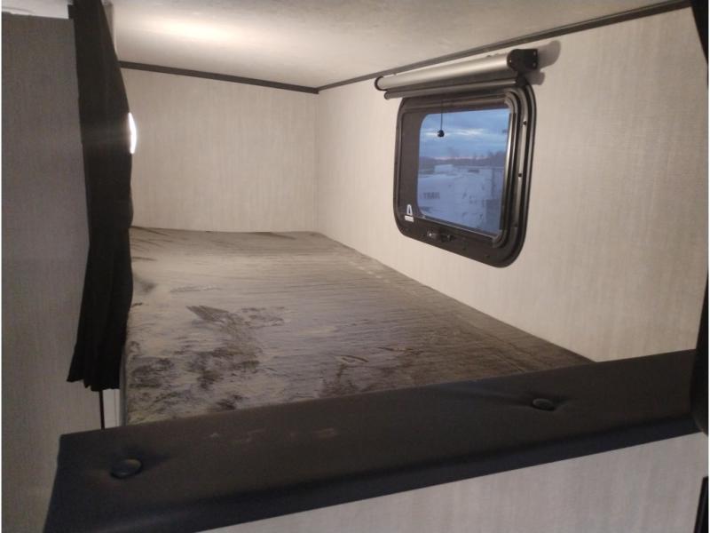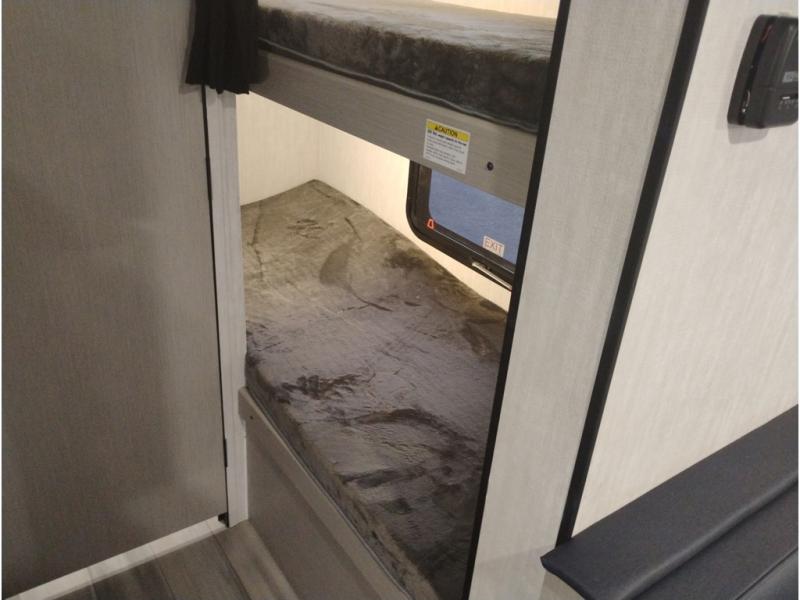 Your family of four will love this versatile Remote bunk travel trailer including two 30" x 74" bunks in back that the children will love, and a 54" x 80" full-size bed up front for you. There is also a booth dinette where you can enjoy meals together. You will find ample storage inside and out with overhead cabinets plus storage beneath the bunks in back and on either side up front. An outside shower is also available which you can use to rinse off before heading inside to keep the dirt where it belongs!