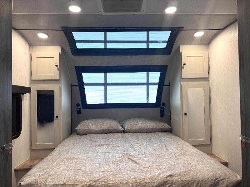 With any Urban travel trailer by Coachmen, the "Twice Cool" dual ducted air conditioning system, motion activated floor lights, and the motion activated pass-through storage light plus fishing pole storage, will make your camping experience simplified. The heated and enclosed underbelly provides protection on the road, the 200W solar panel with 30 amp controller provides off-grid camping, and the power tongue jack makes setup easier. Each is built with a front cap with LED strip lights, a laminated, aluminum framed floor, rear wall, and sidewalls, plus a fully walkable roof with seamless Tufflex PVC covering. Make your decision today, and camp with everything in its place!
