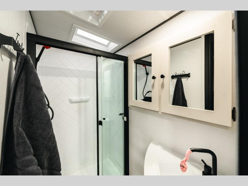 With any Urban travel trailer by Coachmen, the "Twice Cool" dual ducted air conditioning system, motion activated floor lights, and the motion activated pass-through storage light plus fishing pole storage, will make your camping experience simplified. The heated and enclosed underbelly provides protection on the road, the 200W solar panel with 30 amp controller provides off-grid camping, and the power tongue jack makes setup easier. Each is built with a front cap with LED strip lights, a laminated, aluminum framed floor, rear wall, and sidewalls, plus a fully walkable roof with seamless Tufflex PVC covering. Make your decision today, and camp with everything in its place!