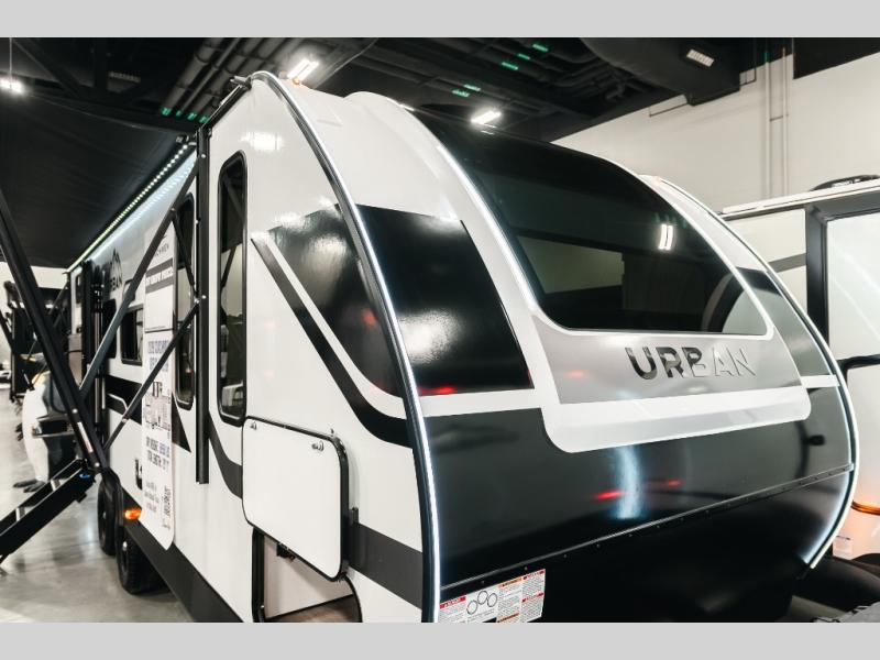 With any Urban travel trailer by Coachmen, the "Twice Cool" dual ducted air conditioning system, motion activated floor lights, and the motion activated pass-through storage light plus fishing pole storage, will make your camping experience simplified. The heated and enclosed underbelly provides protection on the road, the 200W solar panel with 30 amp controller provides off-grid camping, and the power tongue jack makes setup easier. Each is built with a front cap with LED strip lights, a laminated, aluminum framed floor, rear wall, and sidewalls, plus a fully walkable roof with seamless Tufflex PVC covering. Make your decision today, and camp with everything in its place!