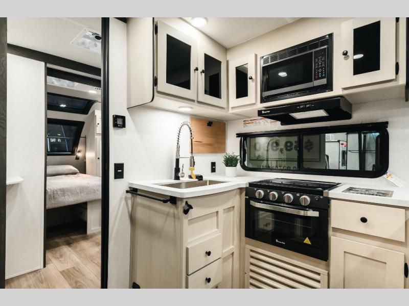 With any Urban travel trailer by Coachmen, the "Twice Cool" dual ducted air conditioning system, motion activated floor lights, and the motion activated pass-through storage light plus fishing pole storage, will make your camping experience simplified. The heated and enclosed underbelly provides protection on the road, the 200W solar panel with 30 amp controller provides off-grid camping, and the power tongue jack makes setup easier. Each is built with a front cap with LED strip lights, a laminated, aluminum framed floor, rear wall, and sidewalls, plus a fully walkable roof with seamless Tufflex PVC covering. Make your decision today, and camp with everything in its place!