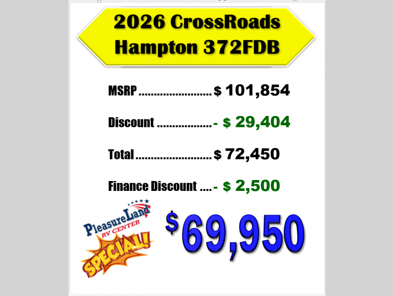 New 2026 CrossRoads RV Hampton 372FDB Destination Trailer