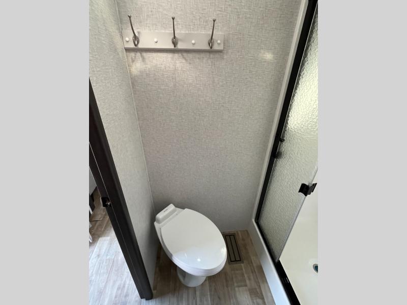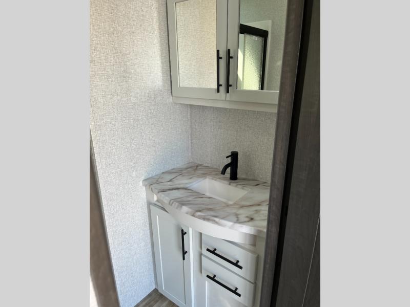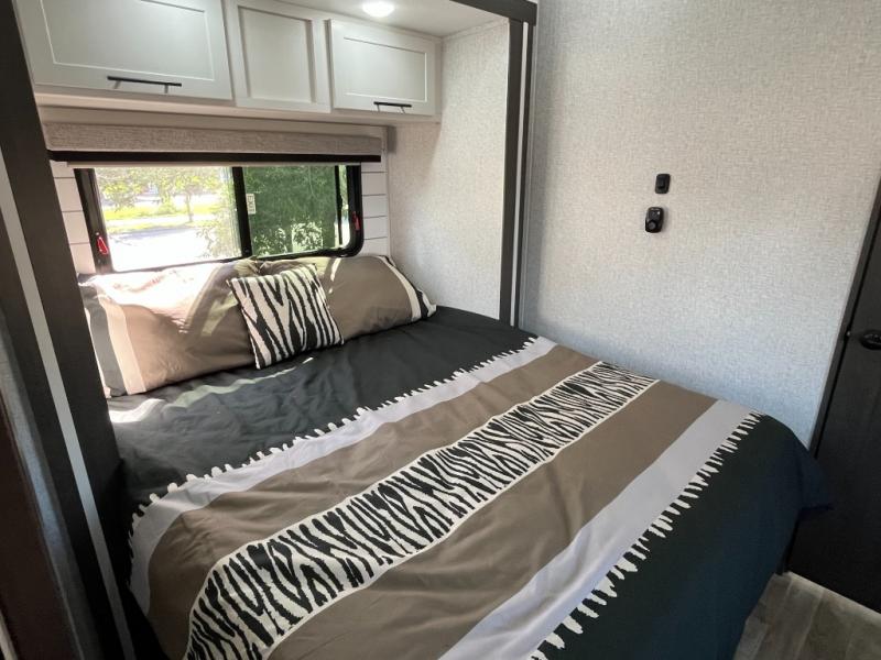 Each Hampton destination trailer by CrossRoads RV includes a one-piece fiberglass front cap, tinted glass windows, and an outside faucet that will surely come in handy when wanting to rinse off your hands or even shoes after exploring outdoors. Each is constructed with a fiberglass roof and floor insulation with radiant tech foil, an enclosed underbelly, and severe weather welded mounts and rain gutters along the entire roof line. And, the Convenience package that comes standard includes KeyTV, a microwave, a quilted bedspread, a power vent in the bathroom, and more. Other interior features offered include decorative accent lighting, an 8-foot floor to ceiling height, a patio door with a swing-out assist rail, and two-toned wood fascia. So choose your destination, select your favorite Hampton, and start feeling at home when you are actually on vacation!
