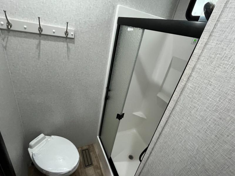 Each Hampton destination trailer by CrossRoads RV includes a one-piece fiberglass front cap, tinted glass windows, and an outside faucet that will surely come in handy when wanting to rinse off your hands or even shoes after exploring outdoors. Each is constructed with a fiberglass roof and floor insulation with radiant tech foil, an enclosed underbelly, and severe weather welded mounts and rain gutters along the entire roof line. And, the Convenience package that comes standard includes KeyTV, a microwave, a quilted bedspread, a power vent in the bathroom, and more. Other interior features offered include decorative accent lighting, an 8-foot floor to ceiling height, a patio door with a swing-out assist rail, and two-toned wood fascia. So choose your destination, select your favorite Hampton, and start feeling at home when you are actually on vacation!
