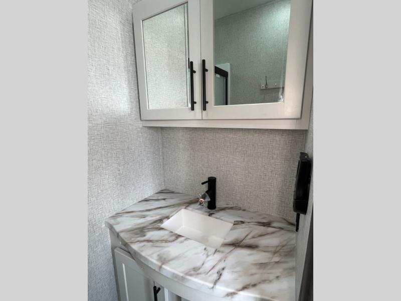 Each Hampton destination trailer by CrossRoads RV includes a one-piece fiberglass front cap, tinted glass windows, and an outside faucet that will surely come in handy when wanting to rinse off your hands or even shoes after exploring outdoors. Each is constructed with a fiberglass roof and floor insulation with radiant tech foil, an enclosed underbelly, and severe weather welded mounts and rain gutters along the entire roof line. And, the Convenience package that comes standard includes KeyTV, a microwave, a quilted bedspread, a power vent in the bathroom, and more. Other interior features offered include decorative accent lighting, an 8-foot floor to ceiling height, a patio door with a swing-out assist rail, and two-toned wood fascia. So choose your destination, select your favorite Hampton, and start feeling at home when you are actually on vacation!