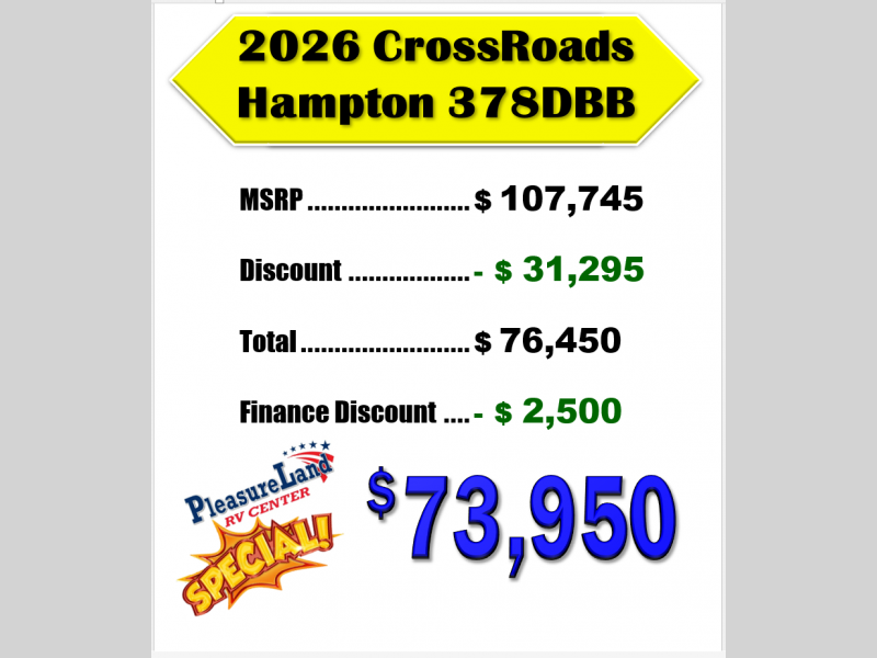 New 2026 CrossRoads RV Hampton 378DBB Destination Trailer
