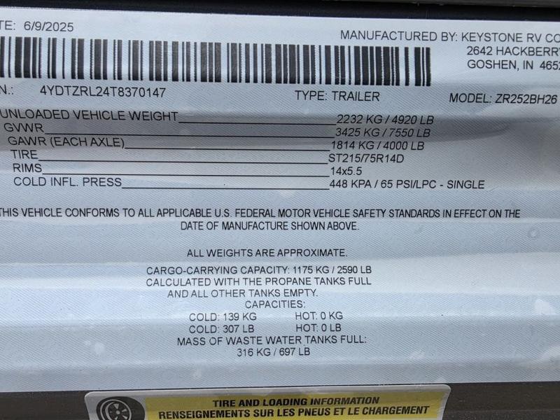 New 2026 CrossRoads RV RV Zinger 252BH Travel Trailer