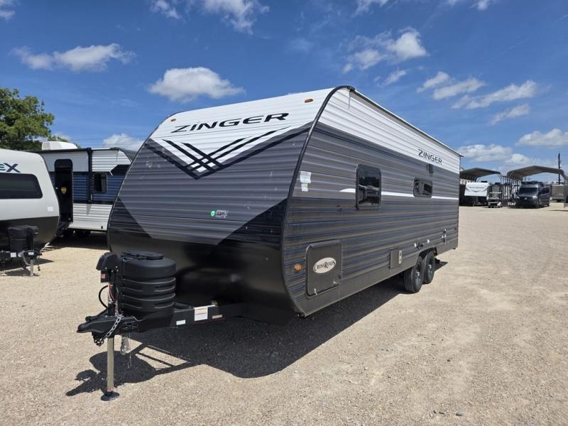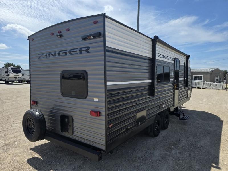 Experience the versatility of the Zinger 252BH, an ideal travel trailer for families and adventurers alike. This unit features a spacious layout with a queen bed, dual bunk beds, and a cozy dinette, comfortably accommodating up to eight people. With essential amenities like a fully equipped kitchen and a convenient bathroom with shower, the Zinger 252BH puts the adventure of RV living at your fingertips.