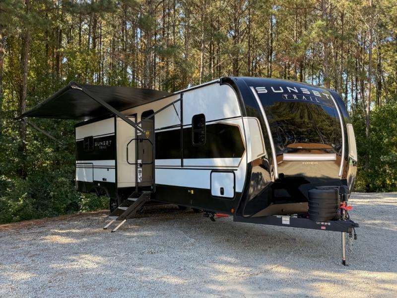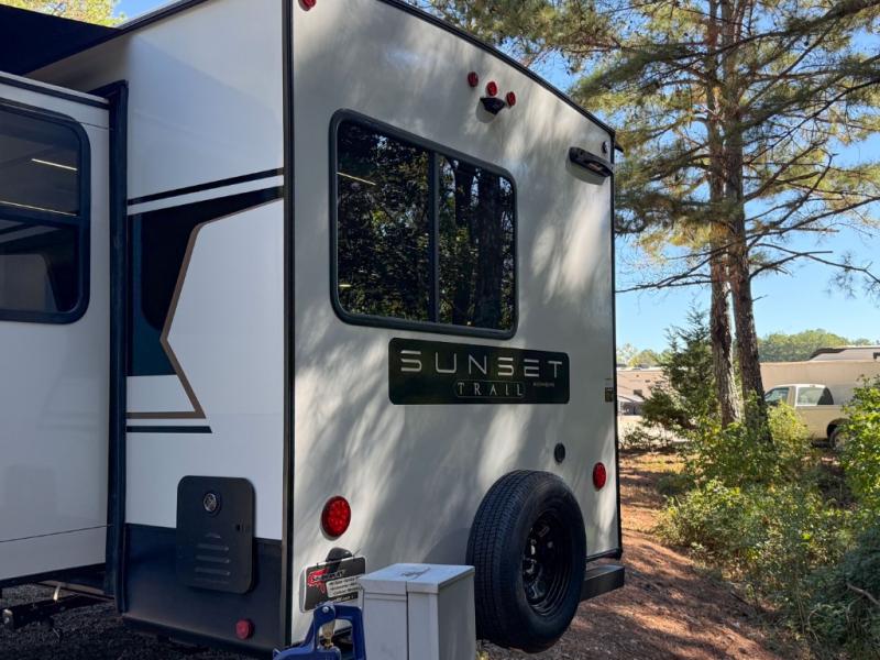 Experience luxury and adventure in the 2026 CrossRoads Sunset Trail 285CRK — featuring a spacious rear kitchen, modern décor, and premium amenities that make every getaway feel like home!