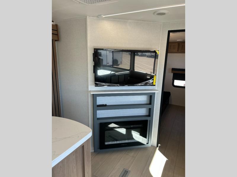 With any Sunset Trailer travel trailer by CrossRoads RV, you will enjoy comfort at every turn! The 5-sided aluminum structure, enclosed underbelly, and HyperDeck flooring provide a durable RV made to last. There is also a power awning with LED lights outdoors, a fiberglass front cap, and a docking station with battery disconnect for easy set-up. Each model includes solid surface kitchen countertops, porcelain toilets, roller shades, and hidden cabinet door hinges to name a few interior comforts!