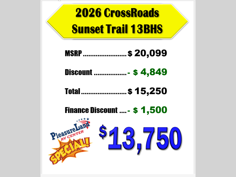 New 2026 CrossRoads RV Sunset Trail Select 13BHS Travel Trailer