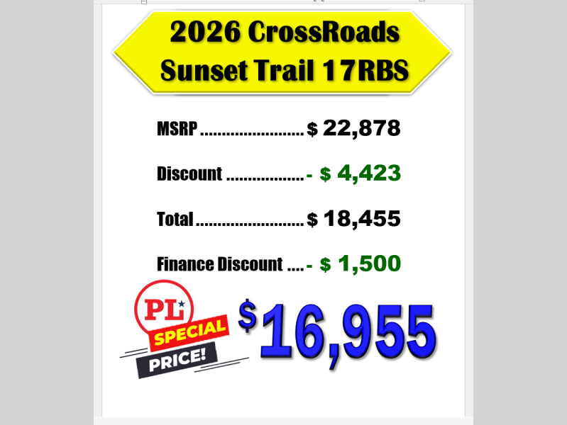 New 2026 CrossRoads RV Sunset Trail select 17RBS Travel Trailer