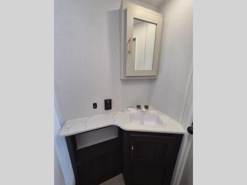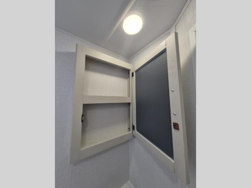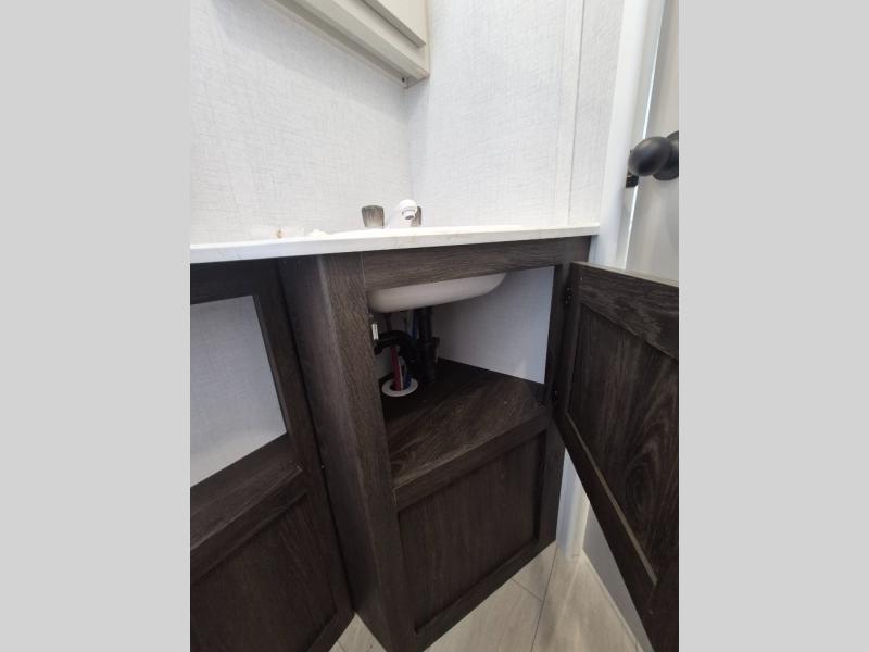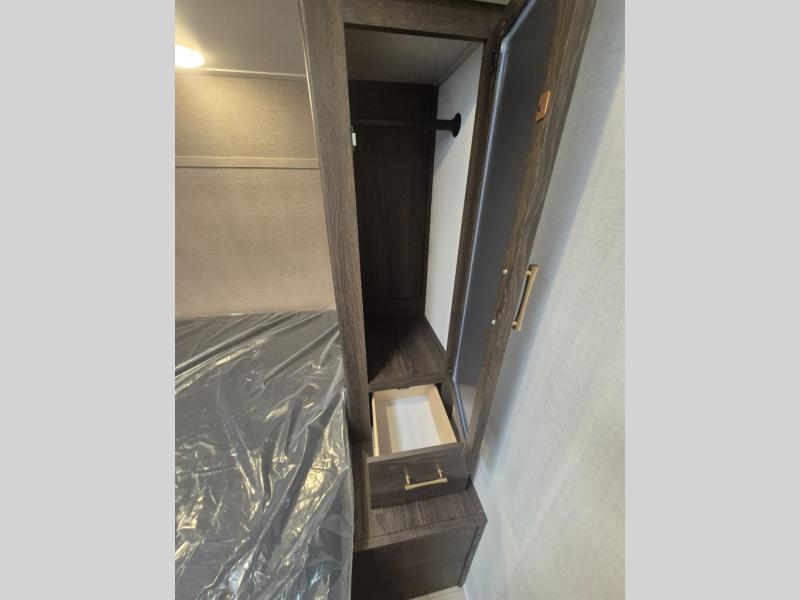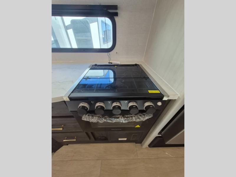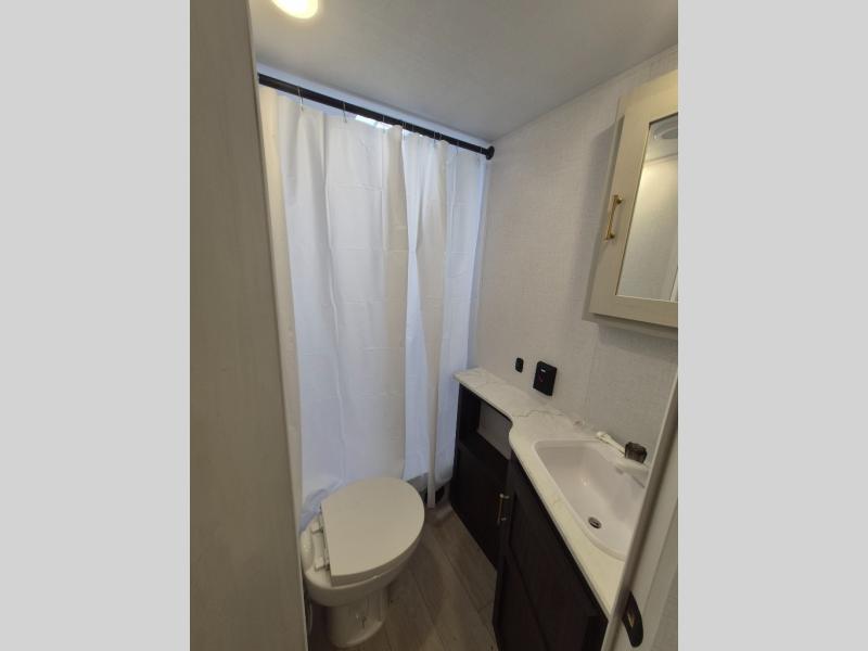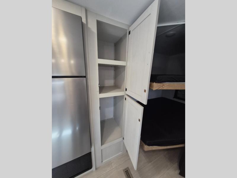 If you've been searching for a travel trailer that can sleep more campers and give you more interior space, this is the one! There are double-size bunks with a ladder for the little ones, an RV queen bed in the front bedroom, plus a jackknife sofa and booth dinette that will double as seating and sleeping space. You will be able to make home cooked meals for your crew since there is a three burner range with a glass top and LED lit knobs, and the 10 cu. ft. 12V refrigerator can keep your food fresh. This model also includes a full bath with a 30" x 36" shower, a foot flush toilet, and a medicine cabinet to keep items organized.