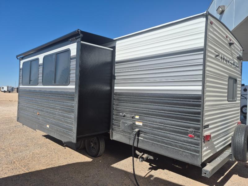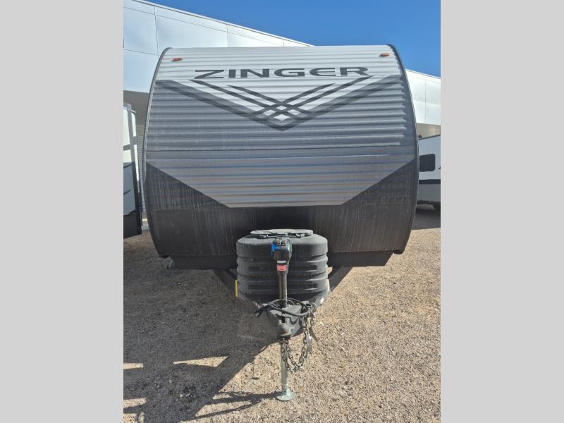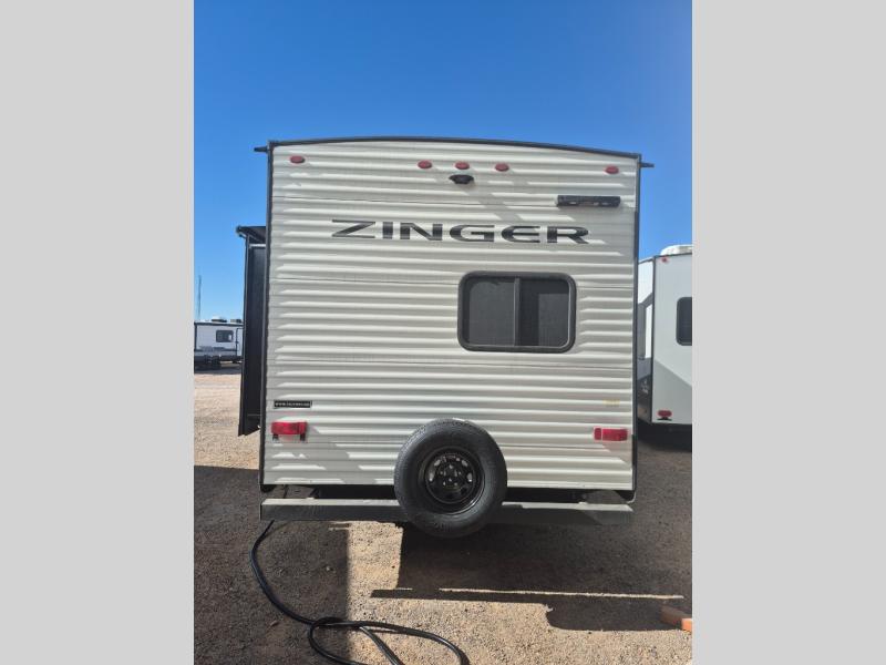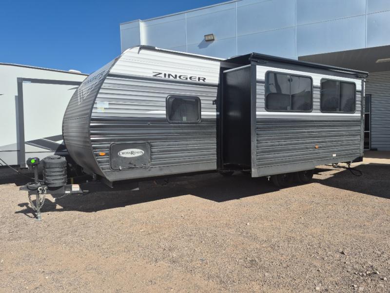 Join the CrossRoads family with a Zinger Lite travel trailer! You'll enjoy an abundance of standard features you would usually find with higher priced travel trailers. Each model features a Super Flex Alpha Roof and front diamond plate for added strength and durability. There is also an electric awning outdoors, along with pass-through storage, rear ladder prep, and a tankless on-demand water heater for added convenience. The interior features pleated shades/mini blinds/fabric window treatments, a 12V refrigerator, comfortable seating and seating spaces, plus plenty of storage for your personal belongings and camp gear!